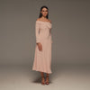 نسقيه مع حذاء نيود وإكسسوارات بسيطة لإبراز لون الفستان وتفاصيله.