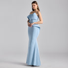Elevate your elegance with this Baby Blue Crepe Gown featuring a graceful peplum drape. The soft crepe fabric offers a refined silhouette that flatters while providing comfort. Its delicate peplum accent adds a touch of sophistication, making it perfect for formal events or special occasions where understated style is paramount.
