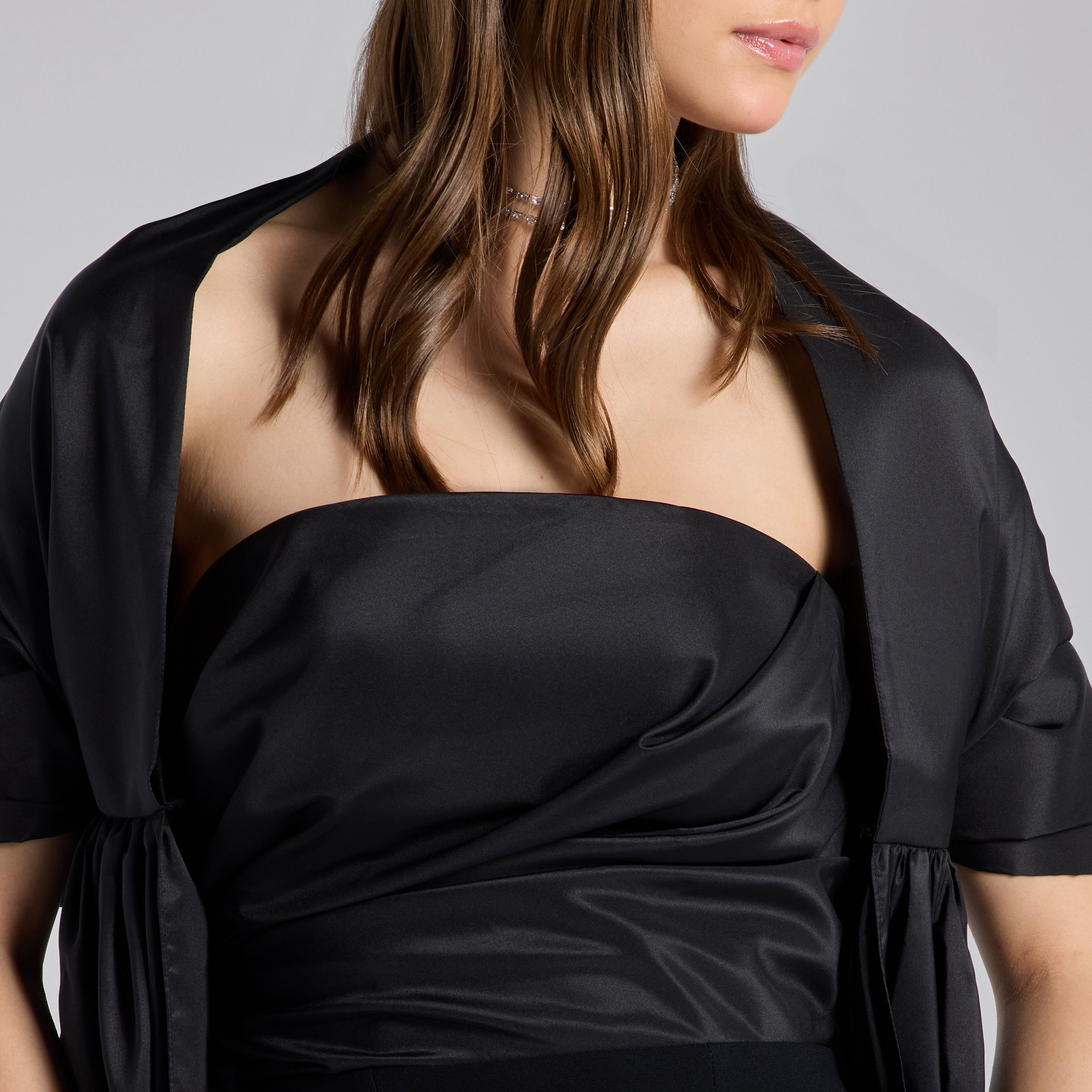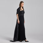 Black Strapless Maxi Dress with Puff Cape Sleeves