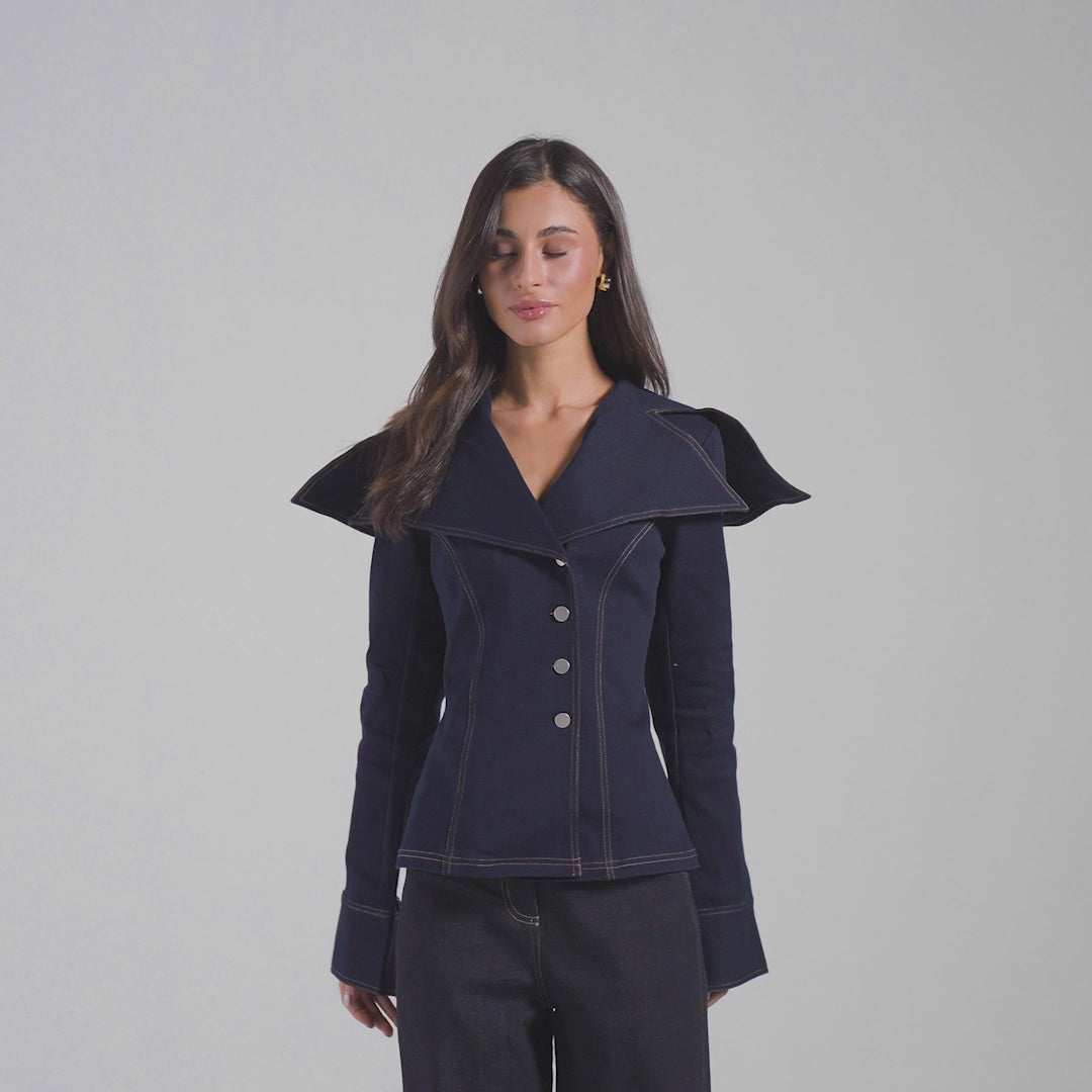 جاكيت جينز بياقة عريضة بتصميم يجمع بين الأناقة والطابع الكاجوال العصري. مصنوع من قماش جينز بقصة محددة تبرز الخصر وتمنح إطلالة أنثوية مريحة. تضيف الياقة العريضة لمسة مميزة تجعل القطعة مثالية للمشاوير اليومية أو العشاءات المسائية.
