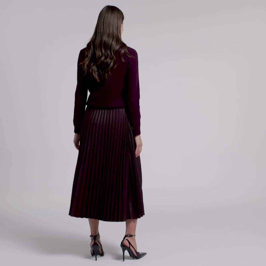 تنورة ميدي بكسرات حادة تأتي بقصة A ميدي لتمنحك راحة وانسيابية في الحركة، مما يجعلها قطعة يمكن تنسيقها بسهولة مع قطع مثل البلايز المحبوكة أو القمصان أو التوبات المحايدة.