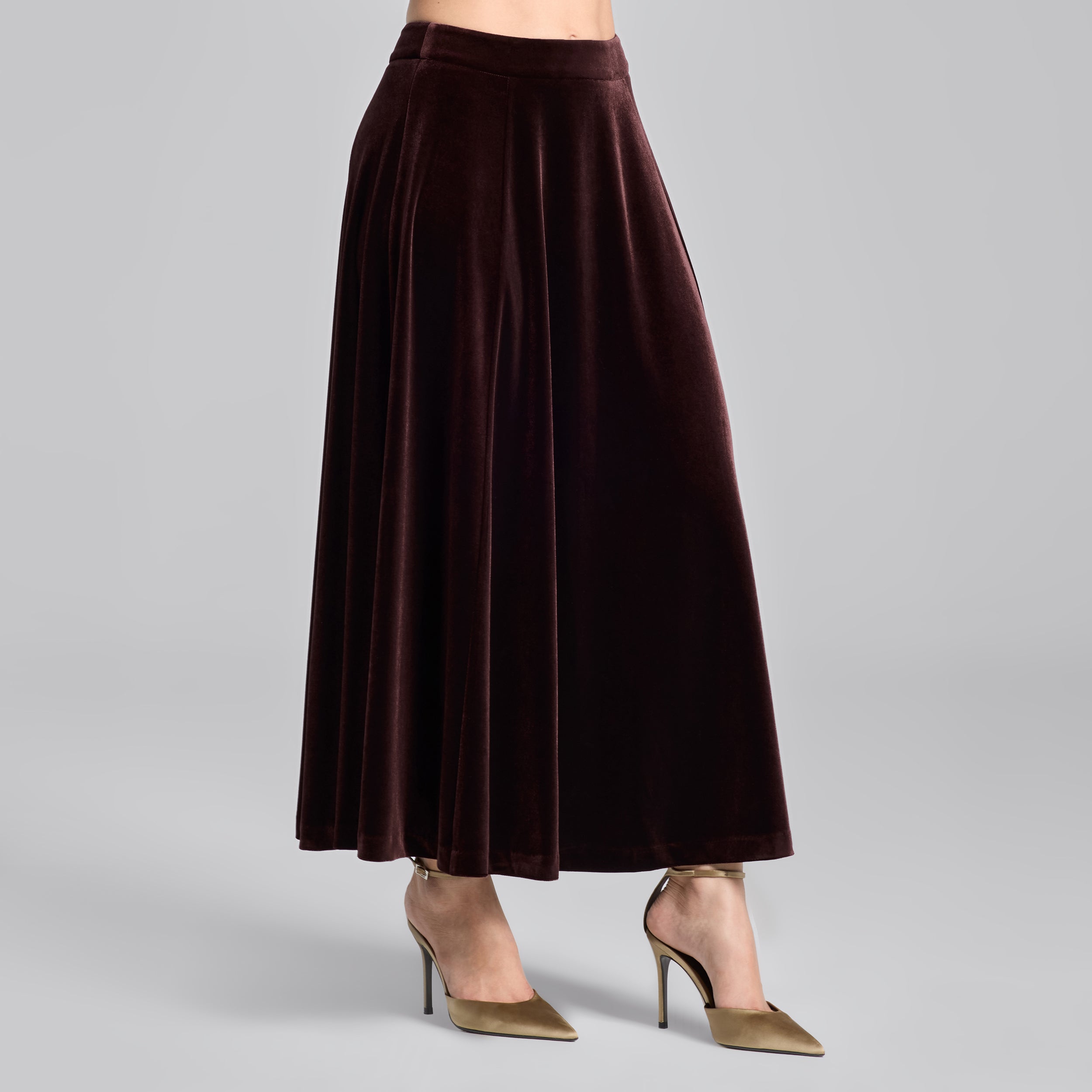 قطعة أنيقة وعملية في الوقت نفسه. يضيف قماش المخمل لمسة فاخرة للتنورة، أما قَصة A مع الحافة المتمايلة فتمنح راحة وحركة طبيعية عند المشي. هذه التنورة هي خيارك في أي مناسبات مسائية أو جمعات مهما كان نوعها.
