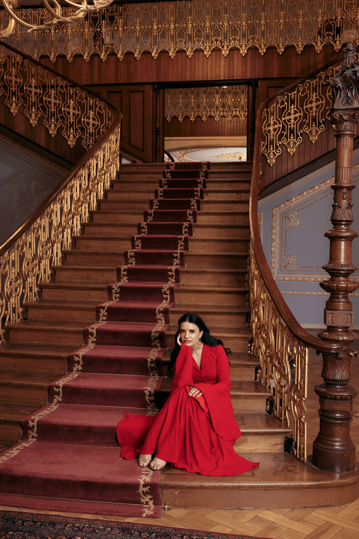 فستان كريب بياقة مطوية وتصميم أزرار أمامية طولية تمنح شكل مرتب وتعطي طول للقوام. ينساب الجزء العلوي الضيق إلى تنورة واسعة تنسدل بأنوثة مع كل خطوة، ليجمع التصميم بين الأناقة والراحة في مناسبات وسهرات العيد.