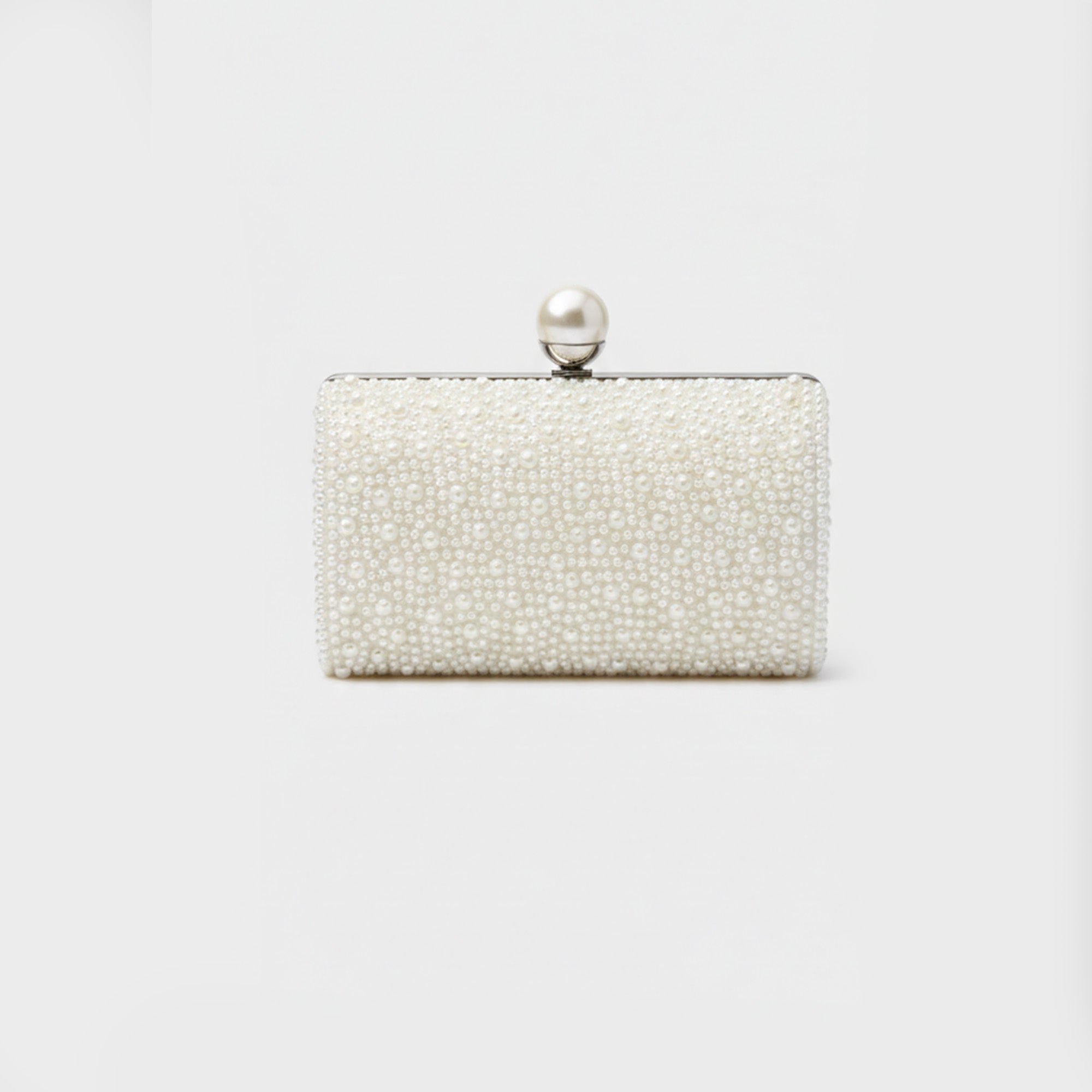 حقيبة كلاتش أوف وايت مزينة باللؤلؤ تضيف لمسة هادئة تكمّل الإطلالة دون أن تطغى عليها. تأتي بحجم عملي يتسع لأغراضك الأساسية بكل أريحية، وملمس لؤلؤ يعطيها مظهر راقي يلائم الإطلالات البسيطة والمناسبات الخاصة مثل الأعراس والعزائم والسهرات. أضيفيها لإطلالتك اليوم – قطعة عملية سترتدينها مرارًا وتكرارًا.