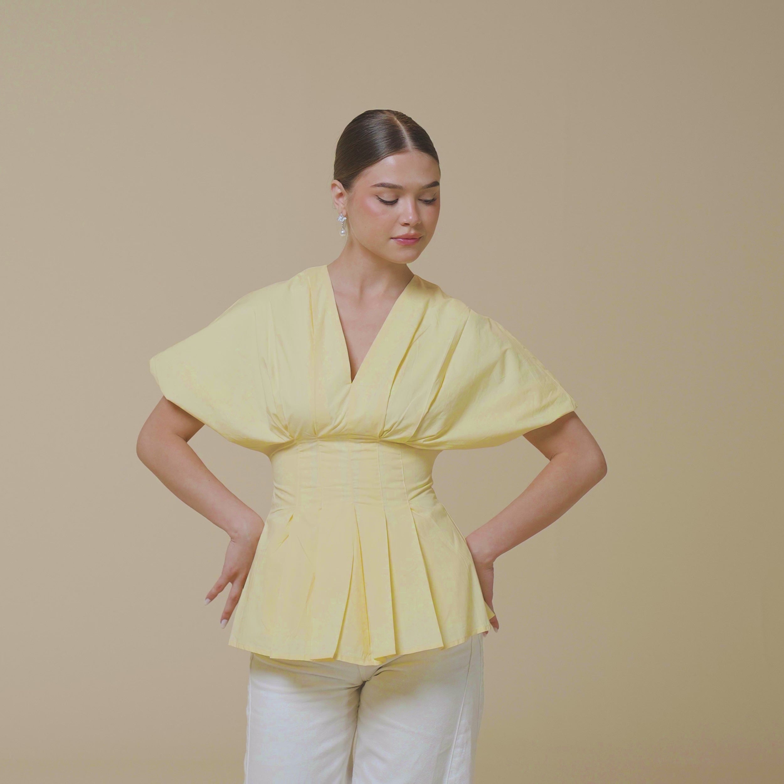 This cotton poplin V-neck top is designed with gentle pleats at the front and back that add texture without bulk. The short sleeves offer coverage while keeping things light, making it a perfect warm-weather option that still feels put together. Fitted yet comfortable, ideal for layering or wearing solo.