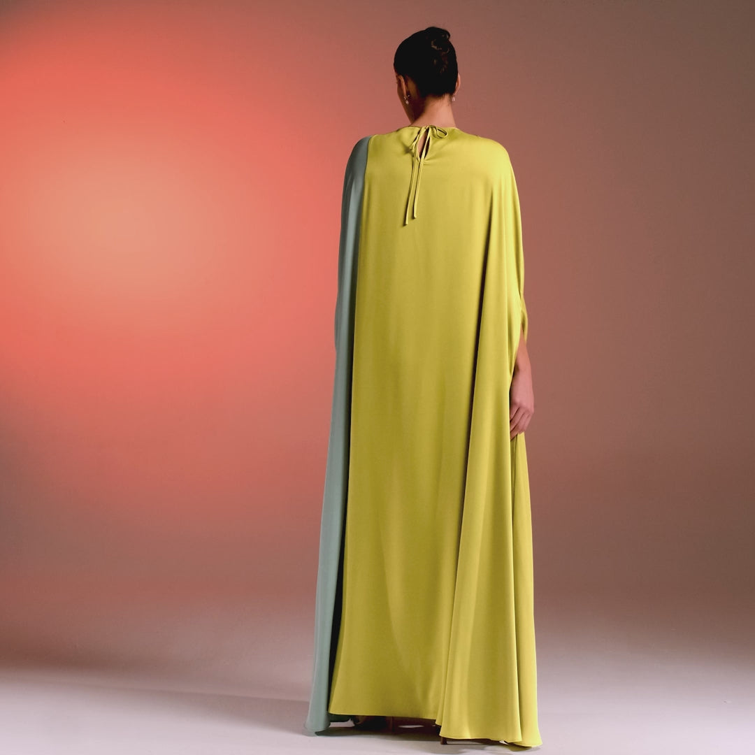 تمتعي بالسحر والرقي في قفطاننا المصنوع من الساتان بقصة اكمام كيب، مثالي لليالي رمضان. ارتقي بأسلوبك مع هذه القطعة الفاخرة الحصرية من أحدث مجموعات ألينا.