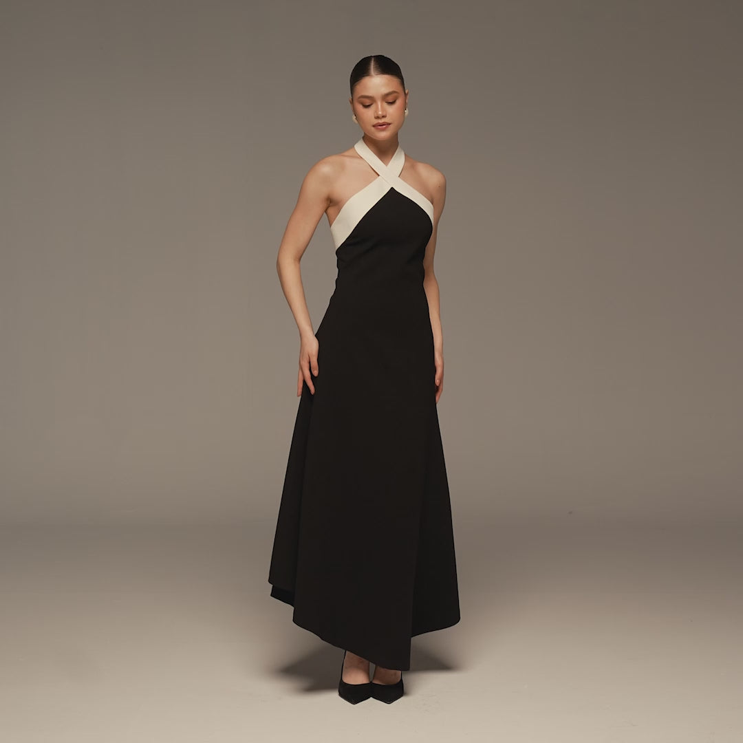 Black & White Halter Crepe Maxi Dress