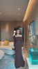 Brown Crepe Off Shoulder Draped Maxi Dress