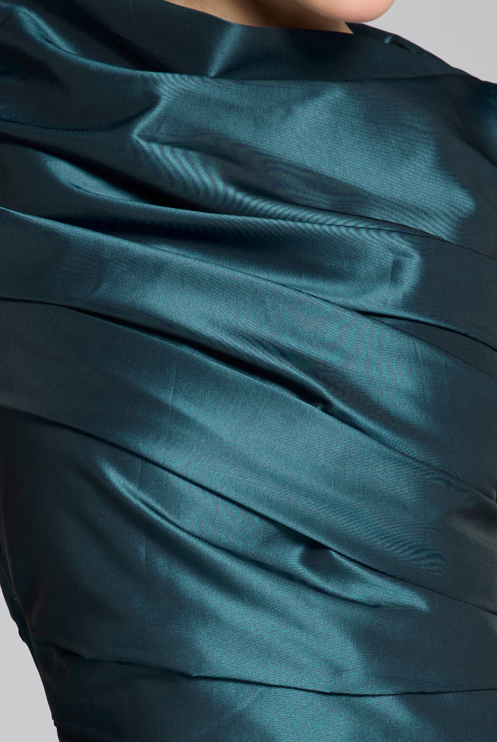 Turquoise Draped Shoulder Jersey Maxi Dress