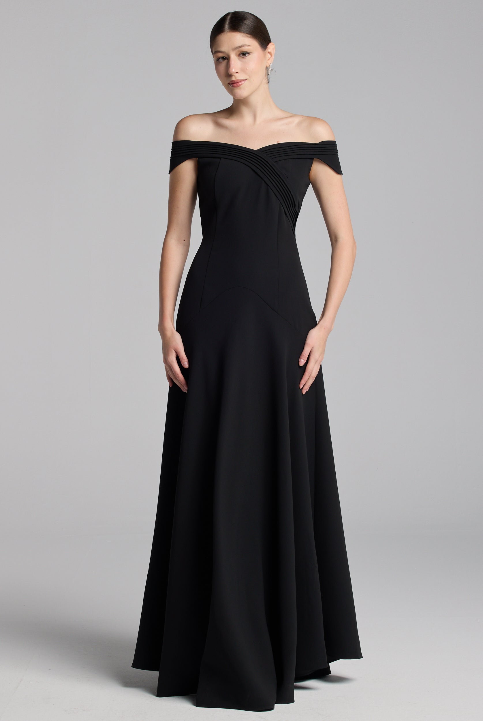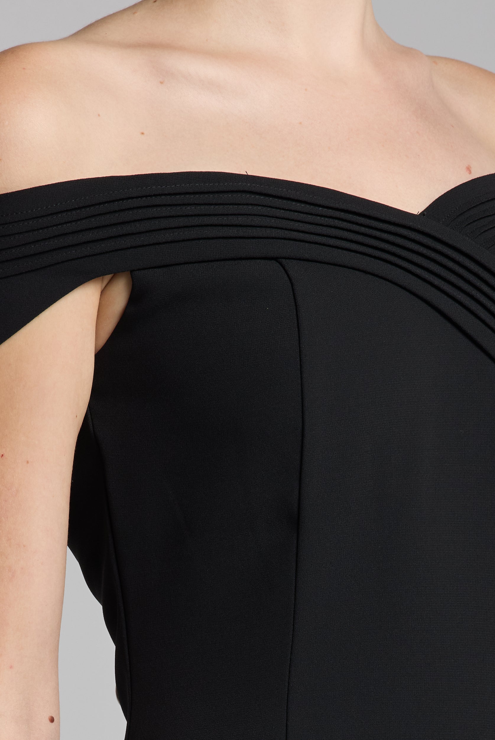 Black & White Crepe and Satin Flared Skirt Midi Dress