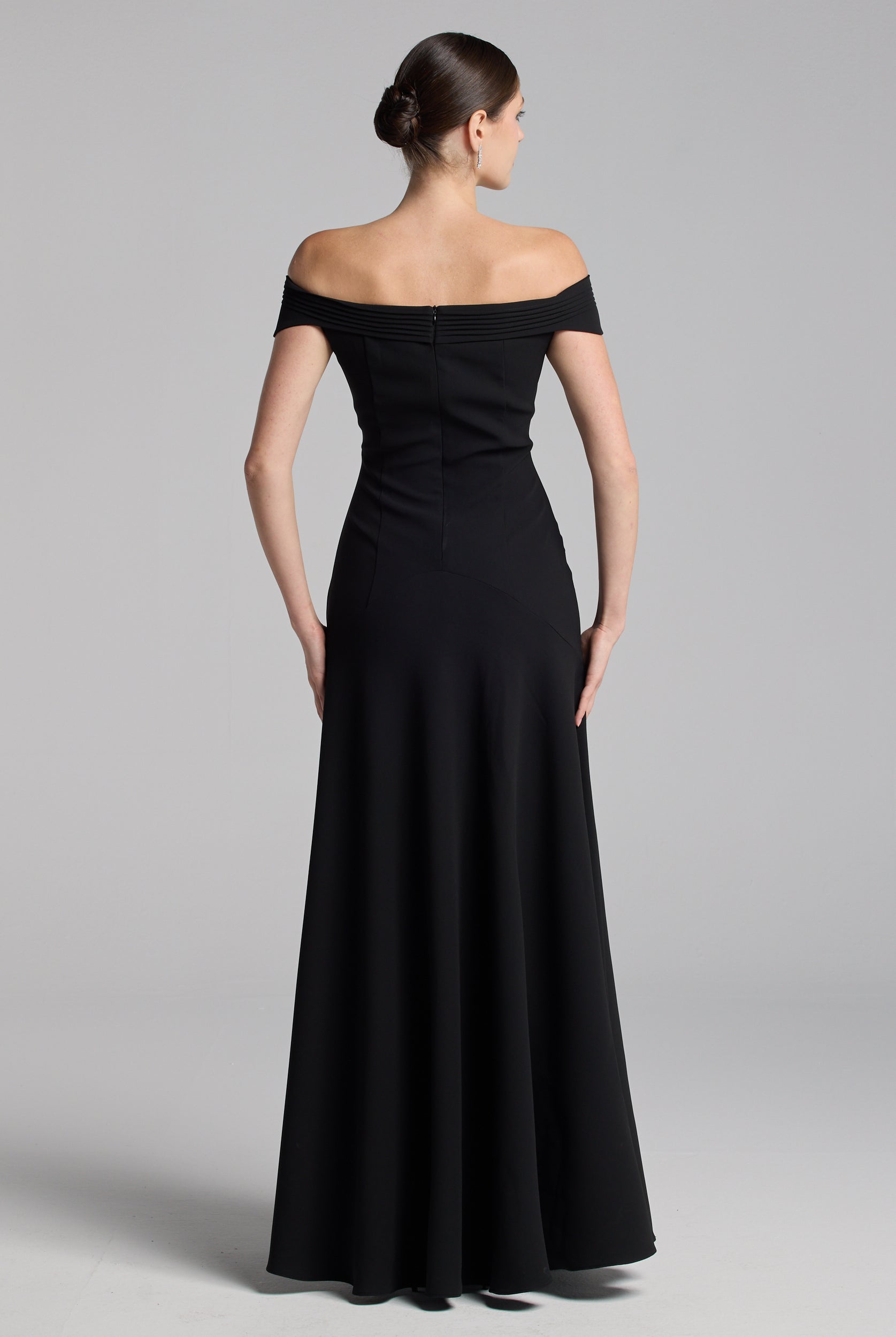 Brown Crepe & Chiffon Cape Sleeve Gown