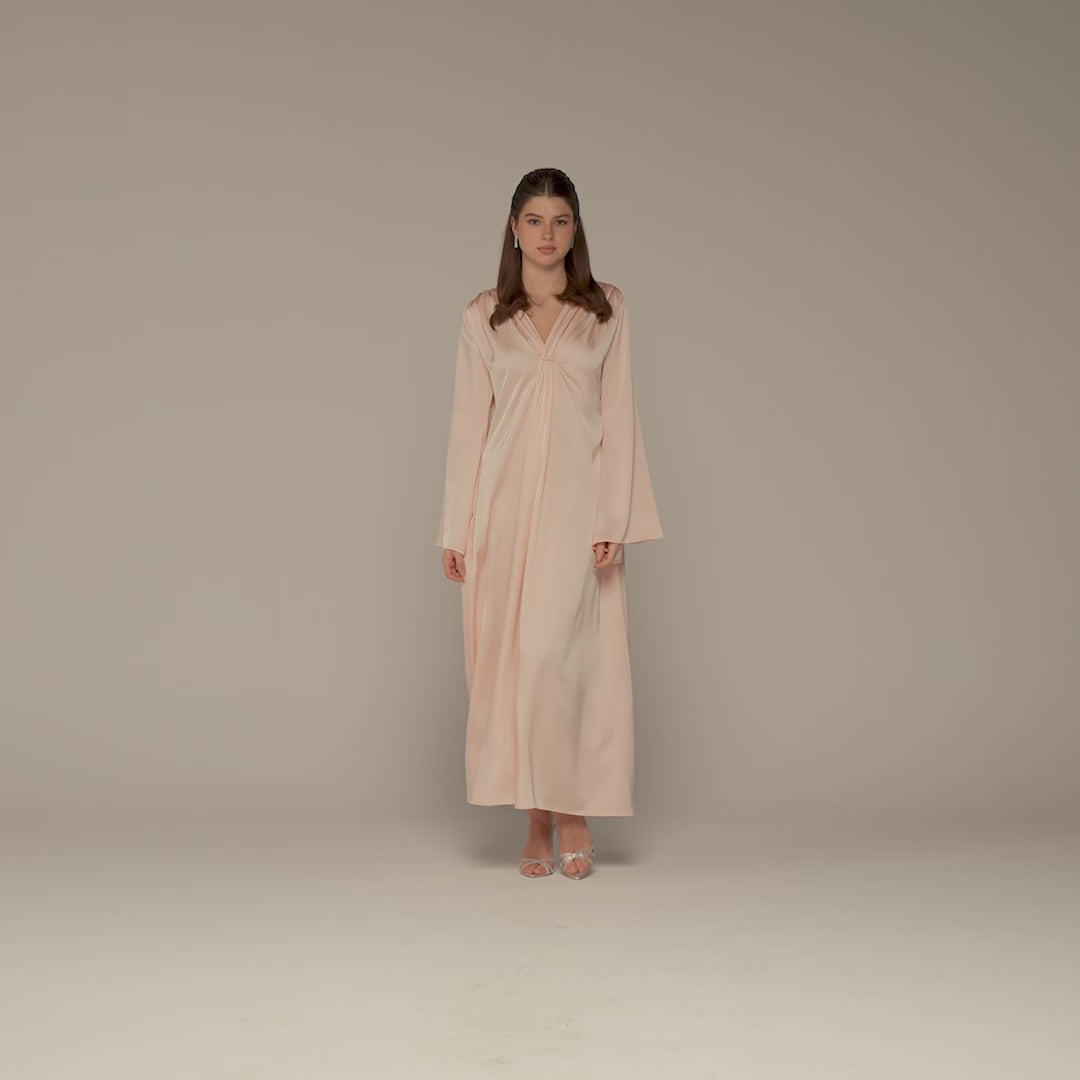 Pink V-Neck Flared Sleeve Satin Kaftan