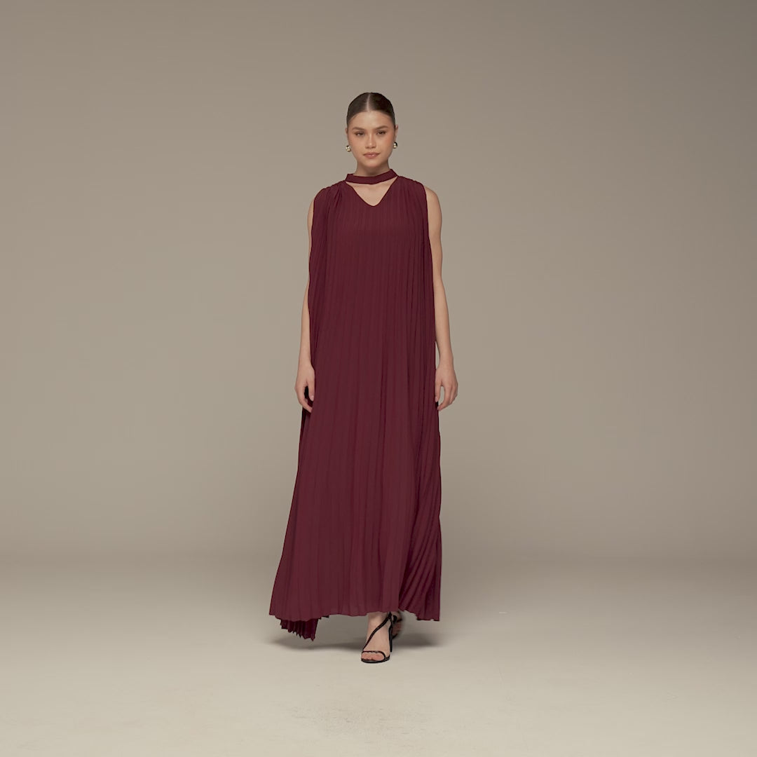 This pleated chiffon dress is an easy choice if you want something flowy that still looks put-together for Ramadan gatherings. The V-neck adds a soft touch without being too open, and the full pleated skirt gives you movement that feels light and effortless all evening.