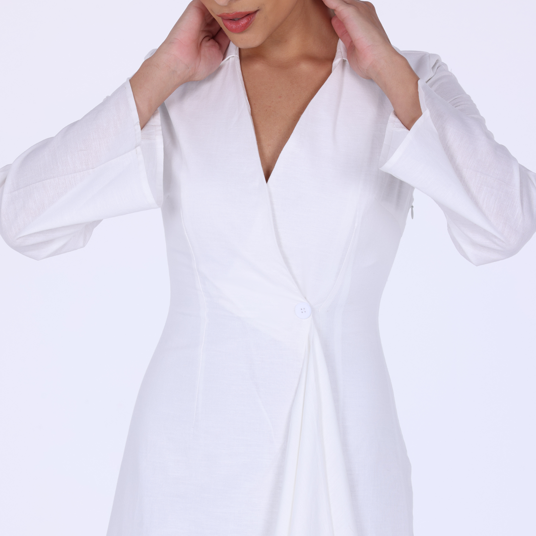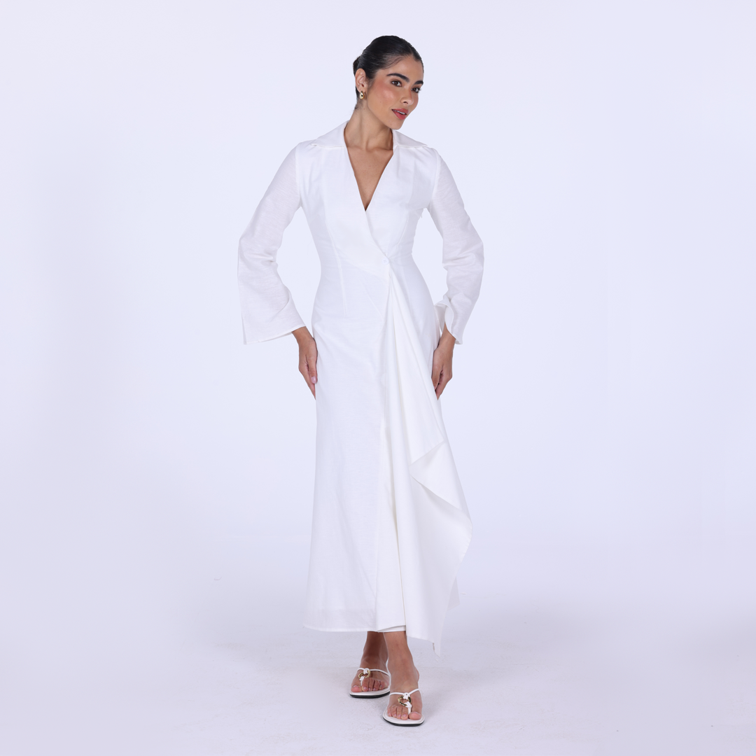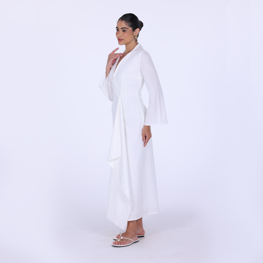 White Cotton Blend Under Abaya Dress