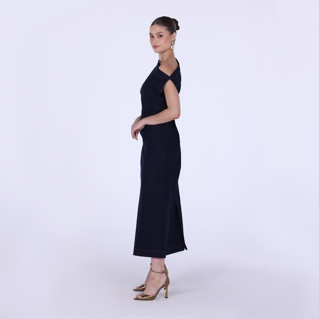 Denim Dropped Shoulder Midi Dress
