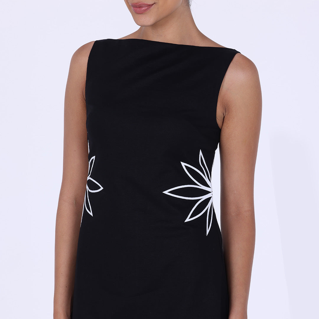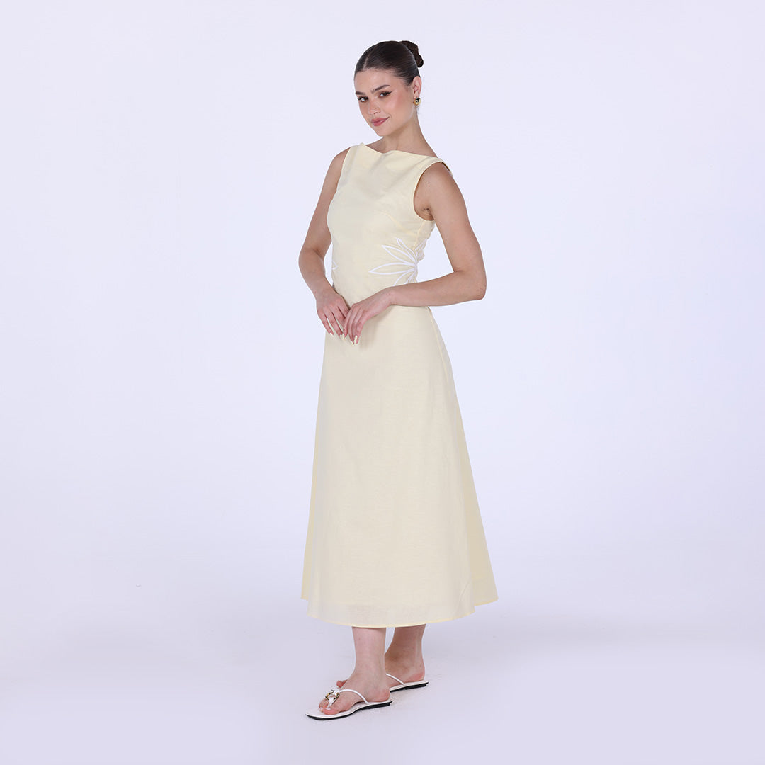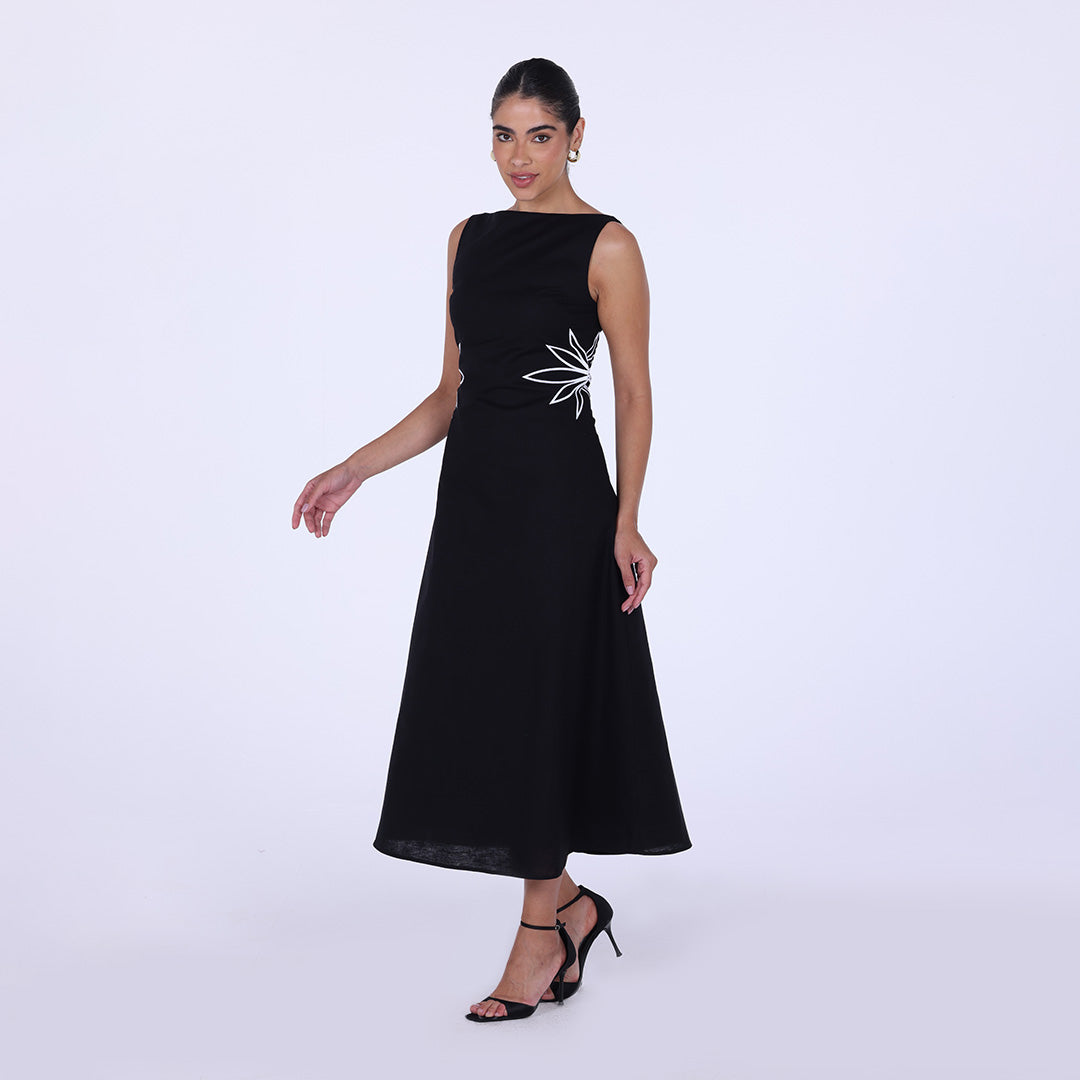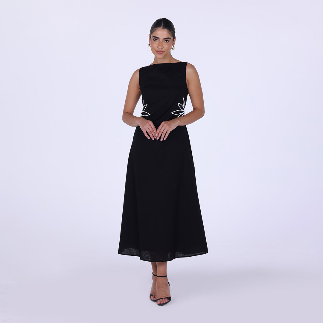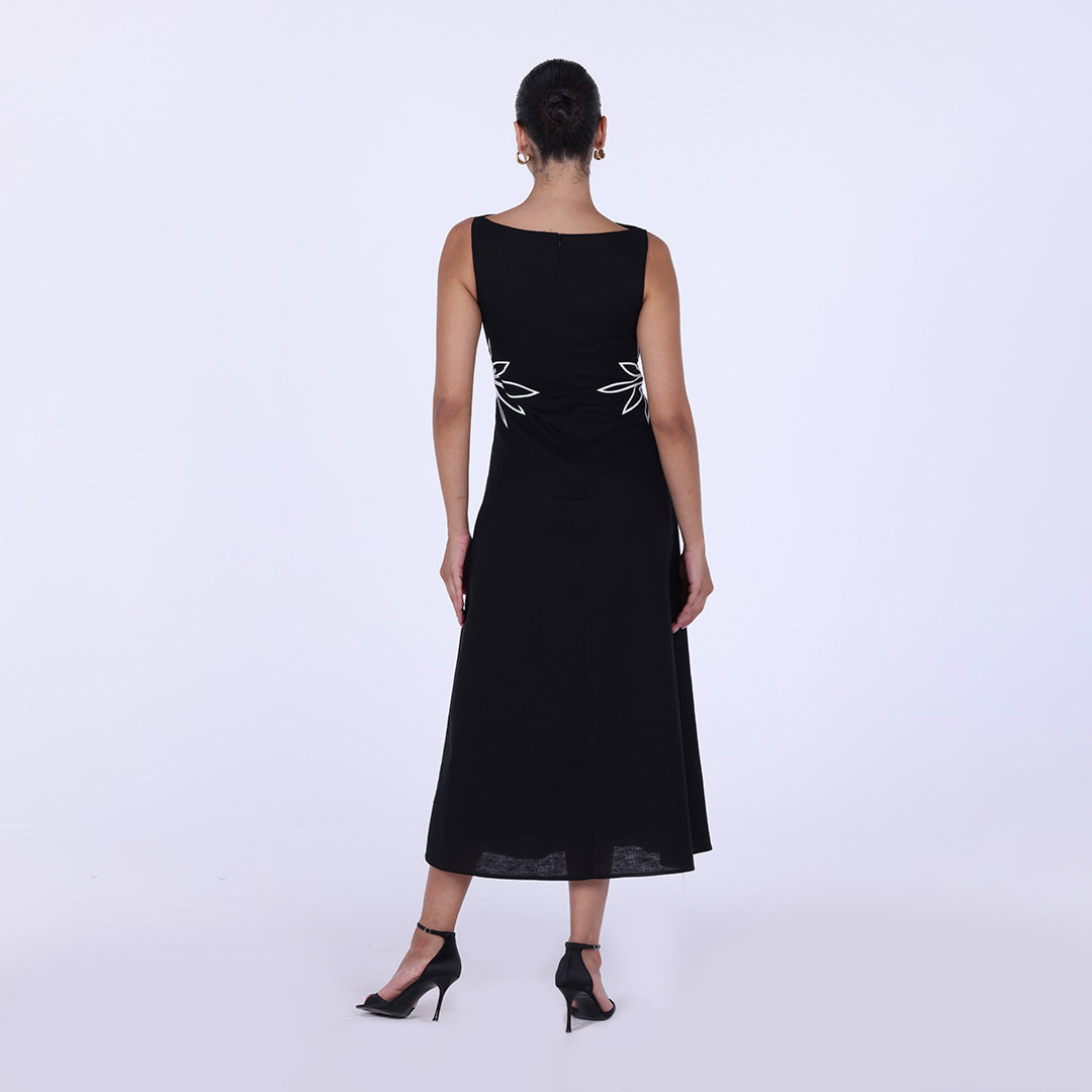 Sleeveless A-line midi dress with waist embroidery