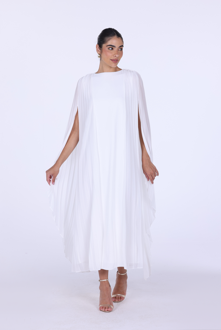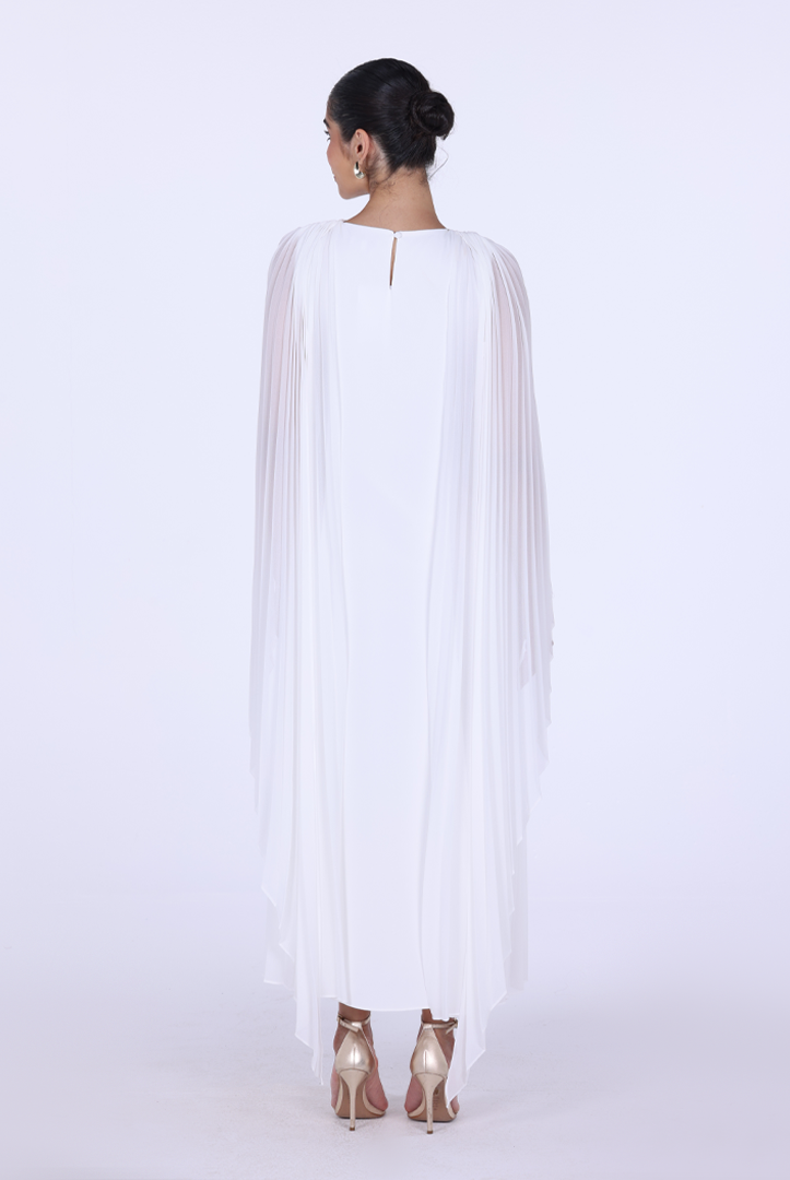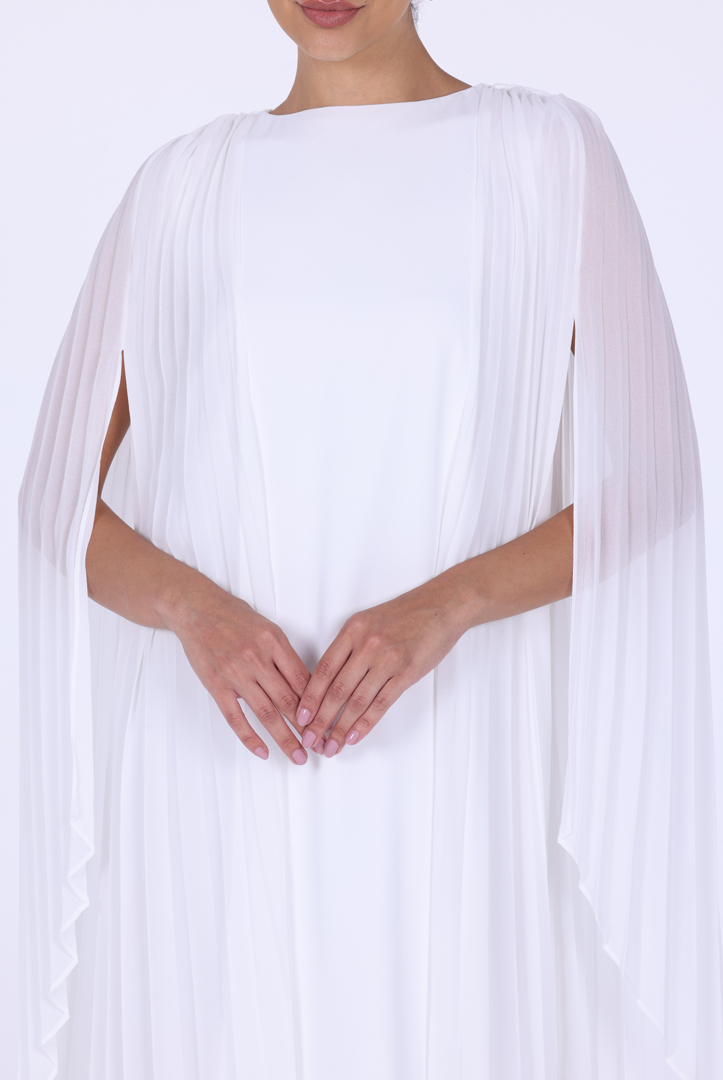 Ivory Short Sleeve Maxi Dress With Pleated Skirt