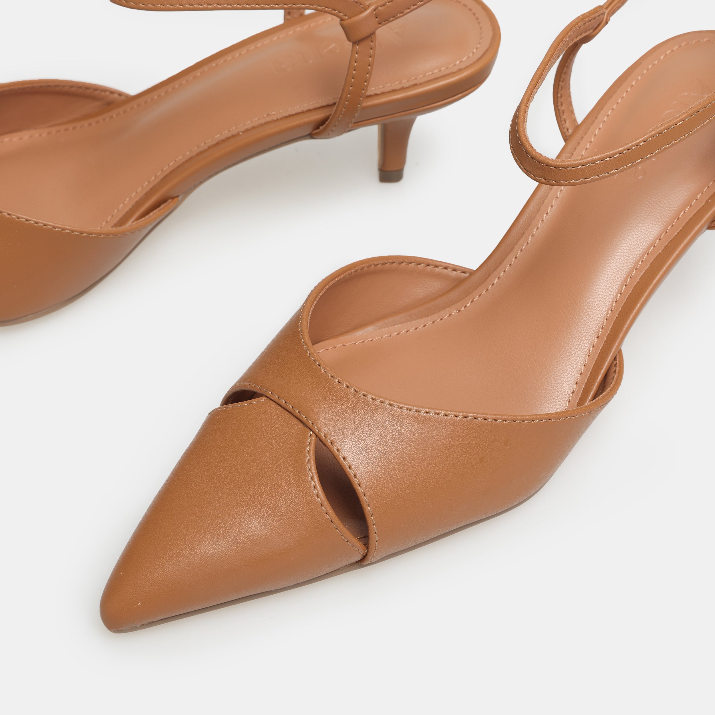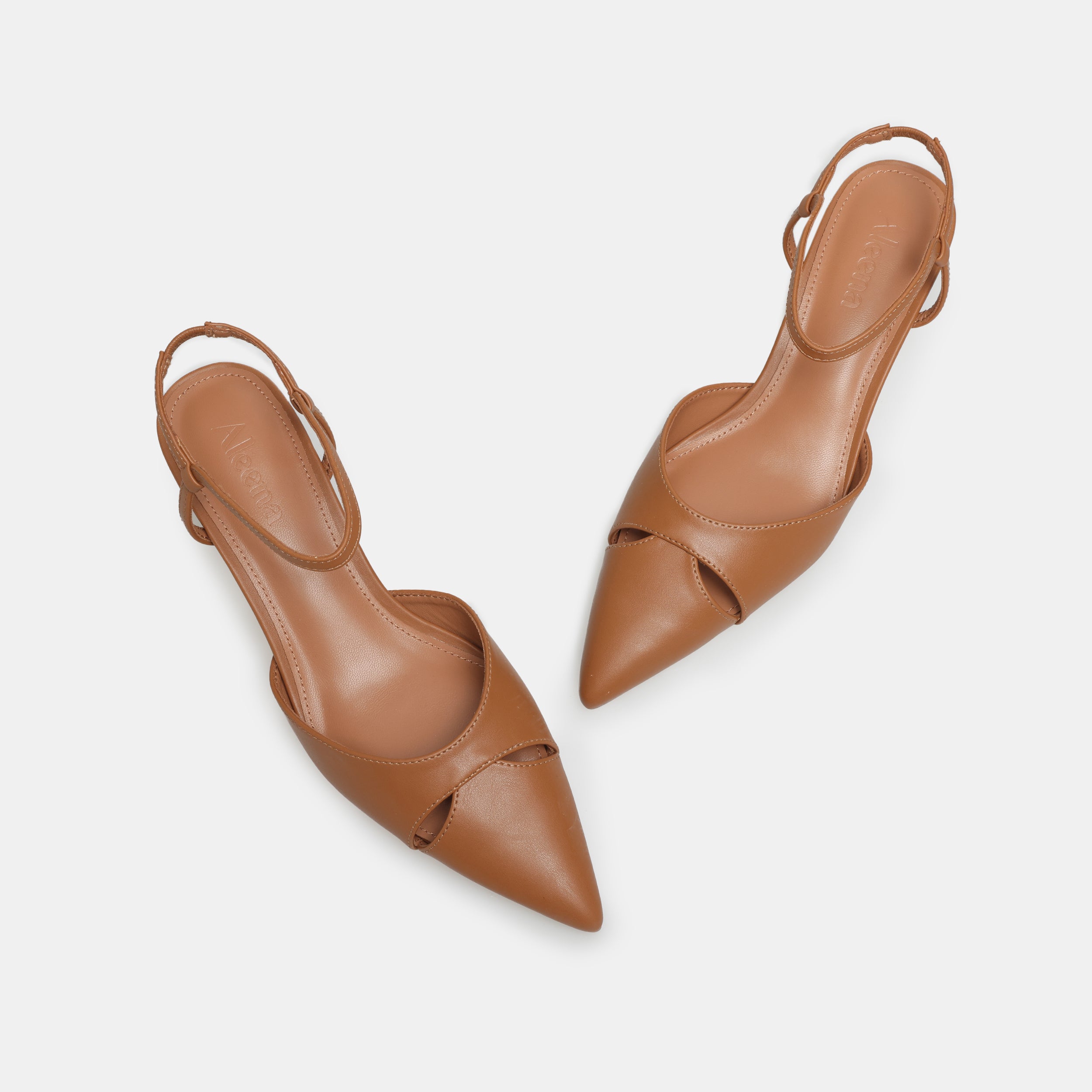 Made from smooth brown leather, these slingback shoes are designed for comfort and versatility. The pointed toe gives a graceful shape, while the short kitten heel adds subtle height without compromising comfort. Perfect for long workdays, casual lunches, or evenings out.