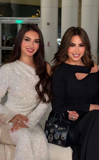 This black crepe dress is made for evenings when you want a clean, confident look with a subtle twist. The asymmetric neckline and small embellished cut-out add interest without feeling revealing, while the fitted crepe skims the body for a smooth, comfortable shape that lasts all night.
