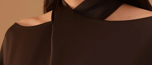 Brown Off-Shoulder Neck Strap Kaftan with Inner Belt