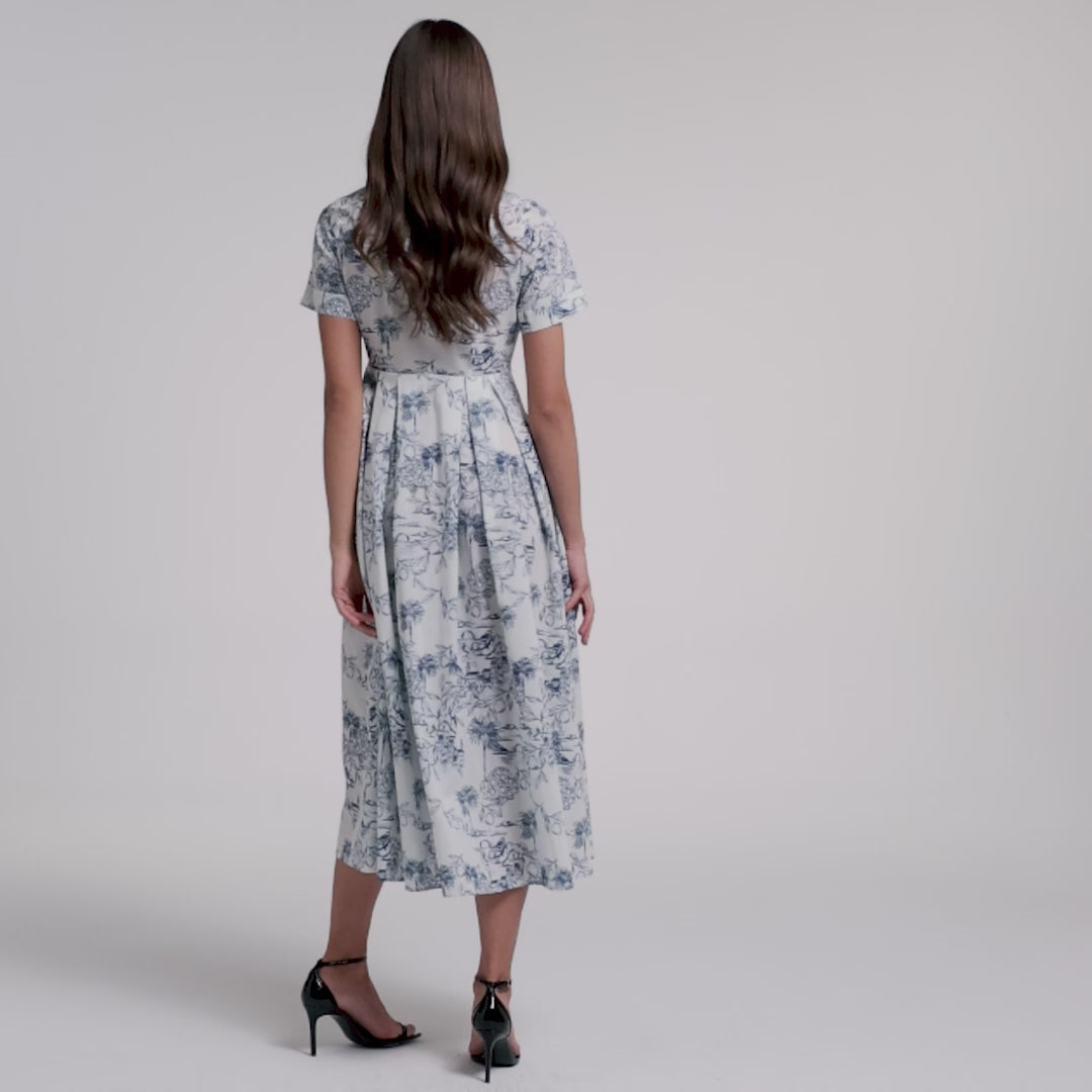 Indulge in luxurious style with our Printed Cotton Midi Dress. Crafted with a delicate print and short sleeves, this dress exudes elegance and sophistication. Made with the finest cotton, it offers both comfort and style. Elevate your wardrobe and make a statement with this exclusive piece.