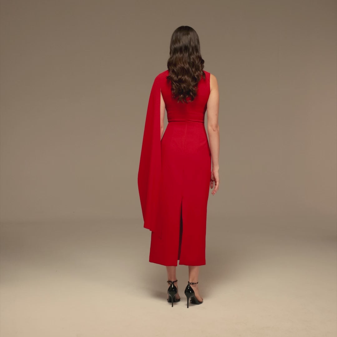 Red Asymmetrical Back Draped Maxi Dress