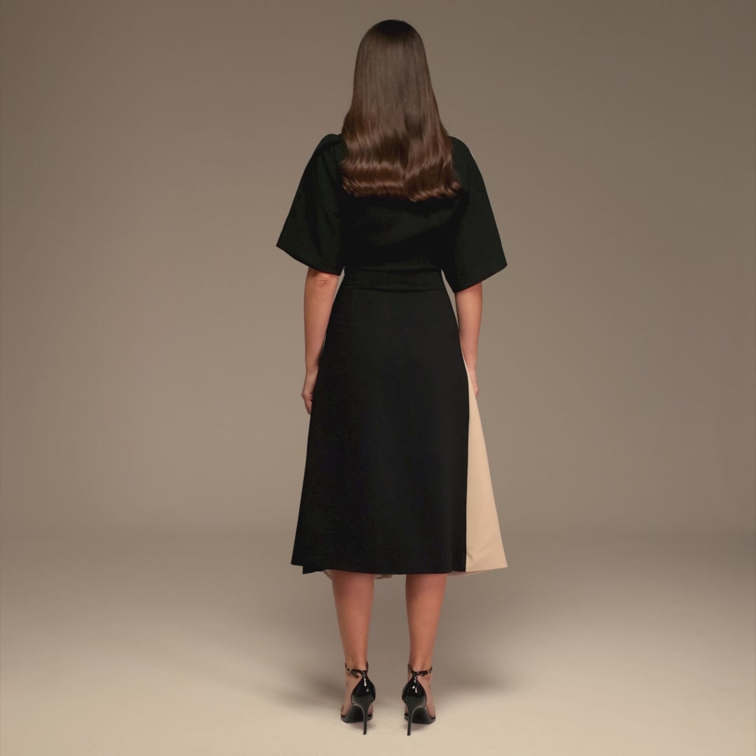 Indulge in luxury with our Short Sleeve Midi Crepe Dress. Its flowing silhouette and delicate crepe fabric exude elegance. The short sleeves add a touch of sophistication, perfect for any occasion. Elevate your wardrobe with this exclusive, must-have piece.