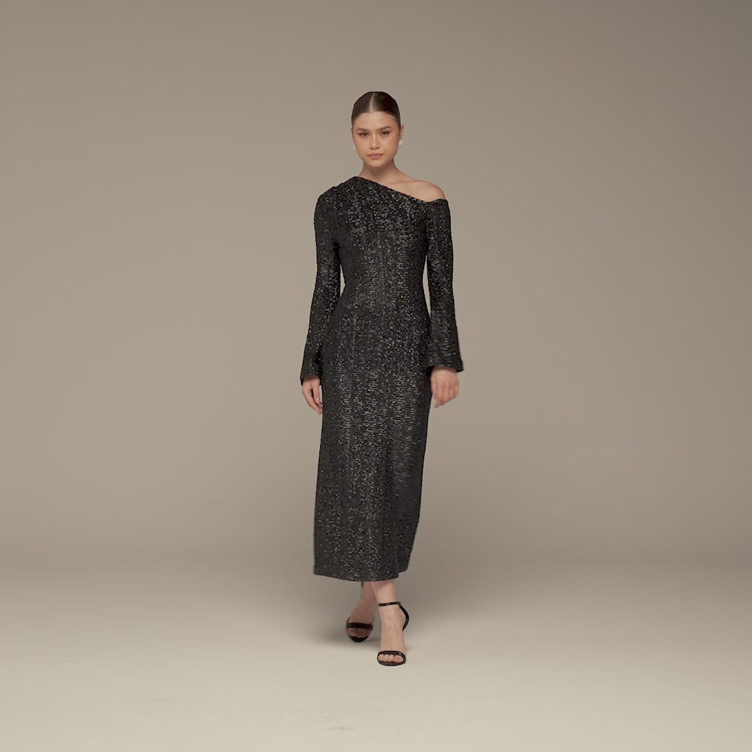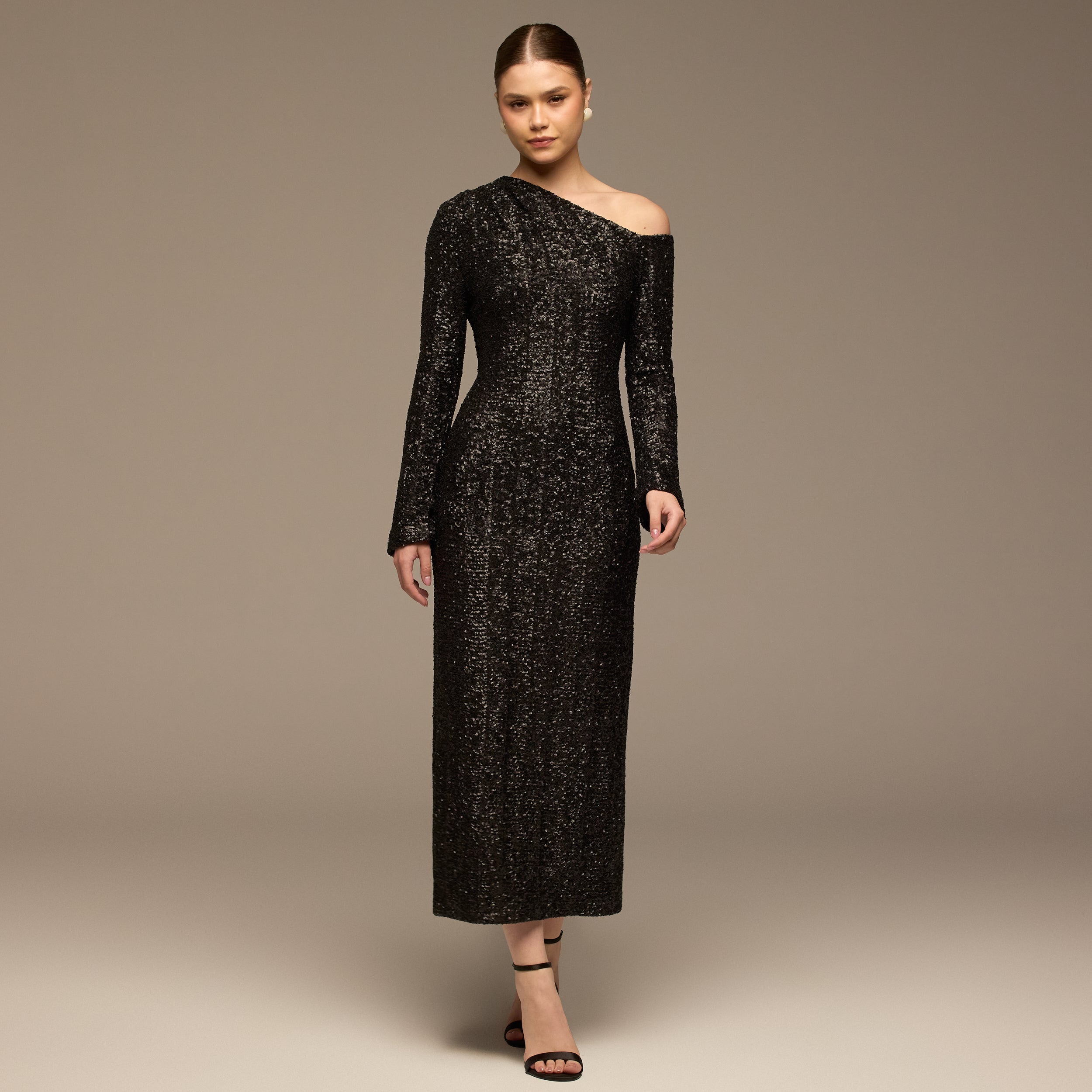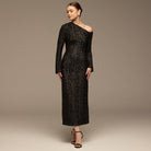 This sequin maxi dress is designed to stand out without feeling heavy. The long sleeves and clean silhouette balance the sparkle for confident coverage at evening events, weddings, or special celebrations, with a soft drape that feels flattering and comfortable all night.