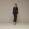 This black crepe dress is made for evenings when you want a clean, confident look with a subtle twist. The asymmetric neckline and small embellished cut-out add interest without feeling revealing, while the fitted crepe skims the body for a smooth, comfortable shape that lasts all night.