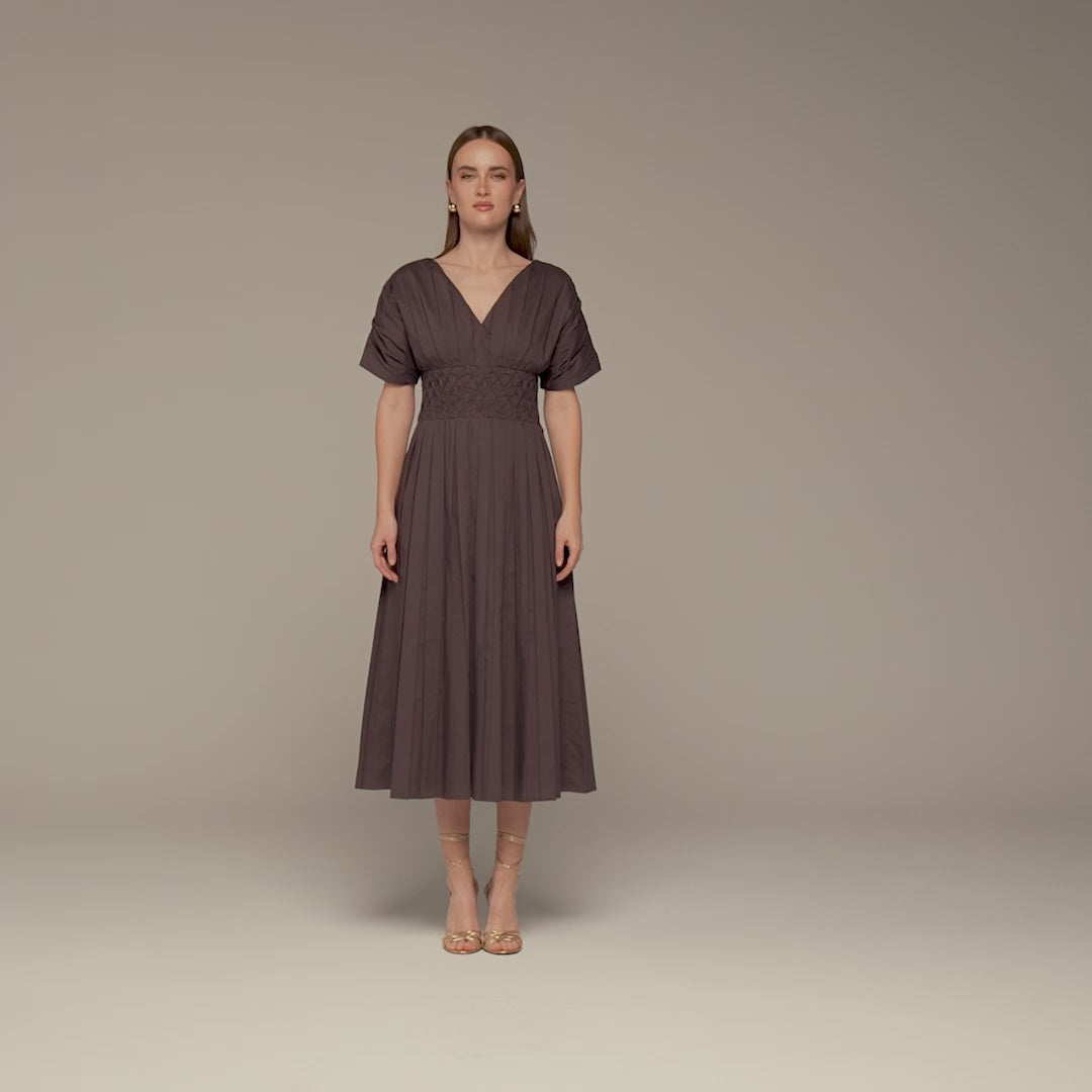 Brown Poplin Cotton Puffy Sleeve Dress