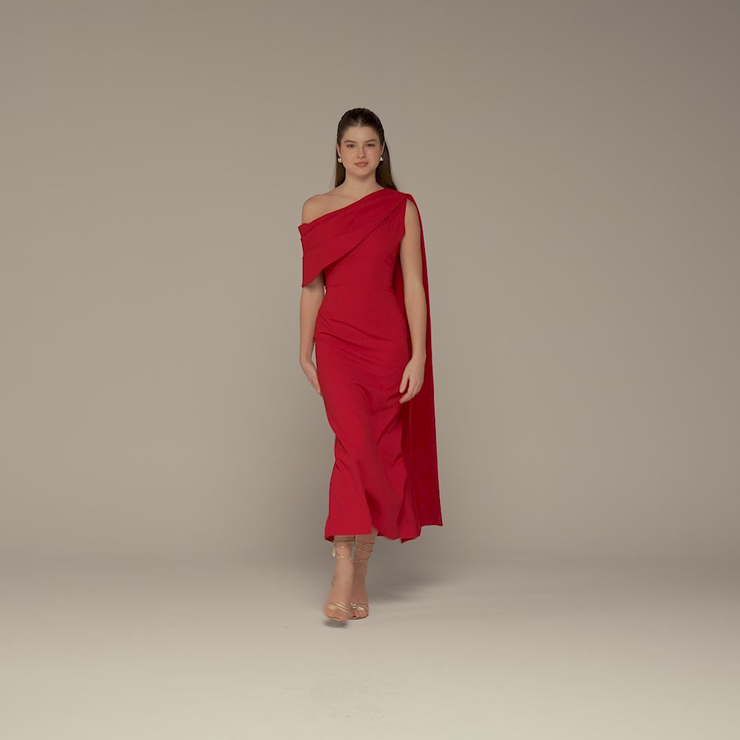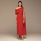 Cherry Red One-Shoulder Crepe and Satin Dress