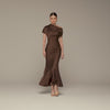 This satin maxi dress features a softly draped neckline that adds fluid shape without feeling revealing. The smooth satin fabric falls cleanly over the body, creating a long, elegant line that moves easily with you. A refined choice for Eid occasions when you want a polished look that still feels light and comfortable.