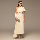 Ivory One Shoulder Draped Crepe Dress