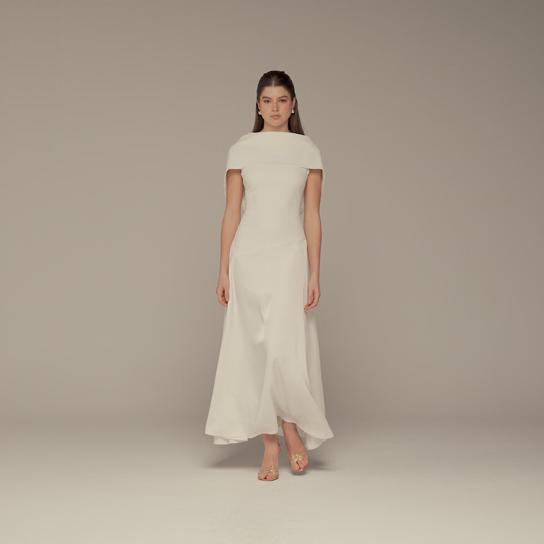 Ivory Off-Shoulder Crepe and Satin Maxi Dress