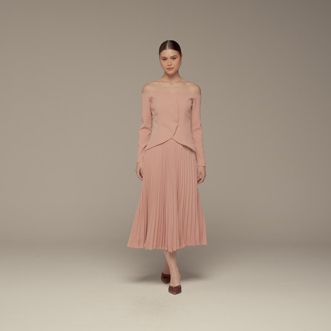 Pink Crepe & Chiffon Pleated Maxi Dress