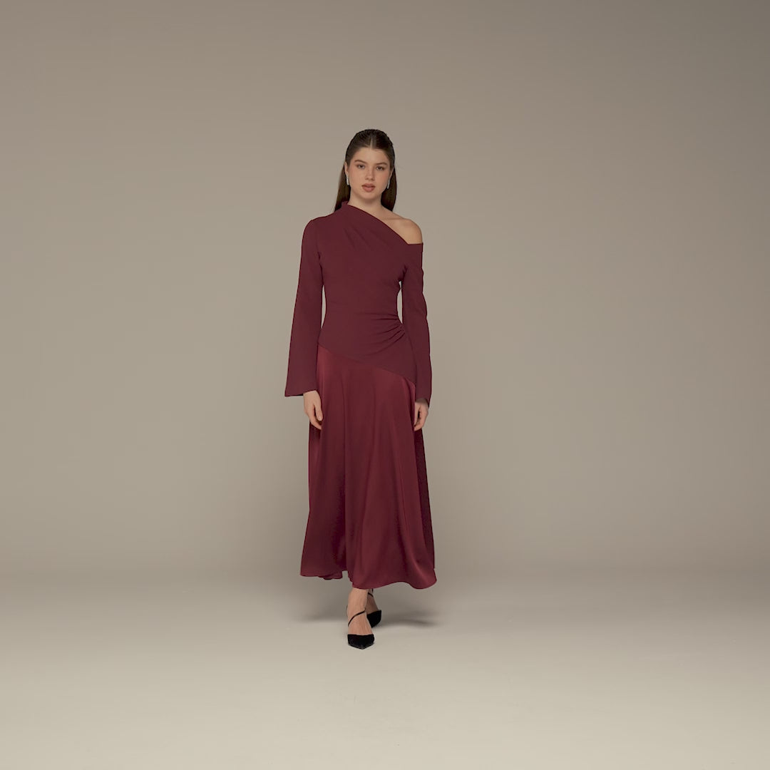 Plum Crepe & Satin One Shoulder Maxi Dress