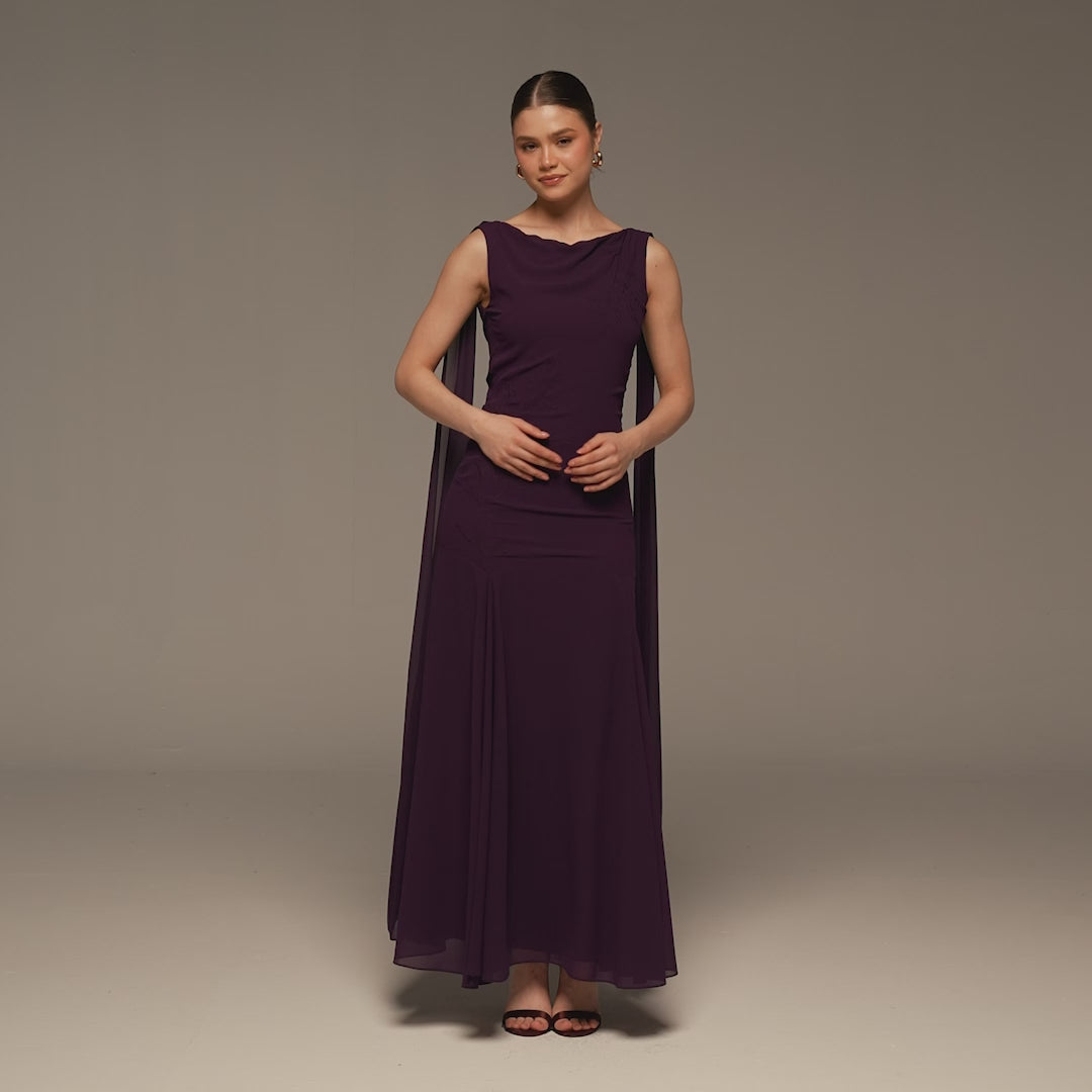 Purple Sleeveless Embroidered Chiffon Maxi Dress