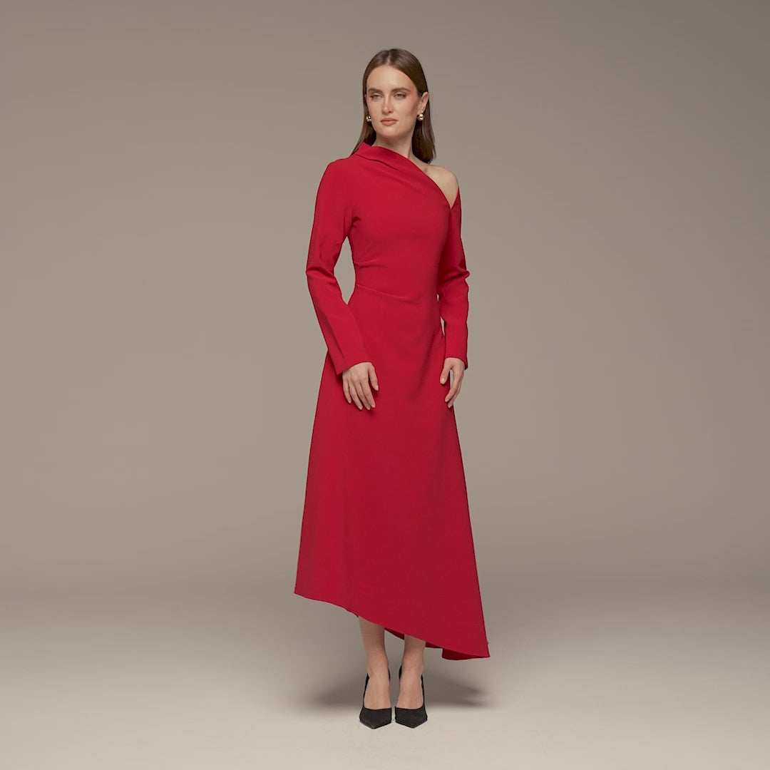 Red Asymmetric Neckline Crepe Dress