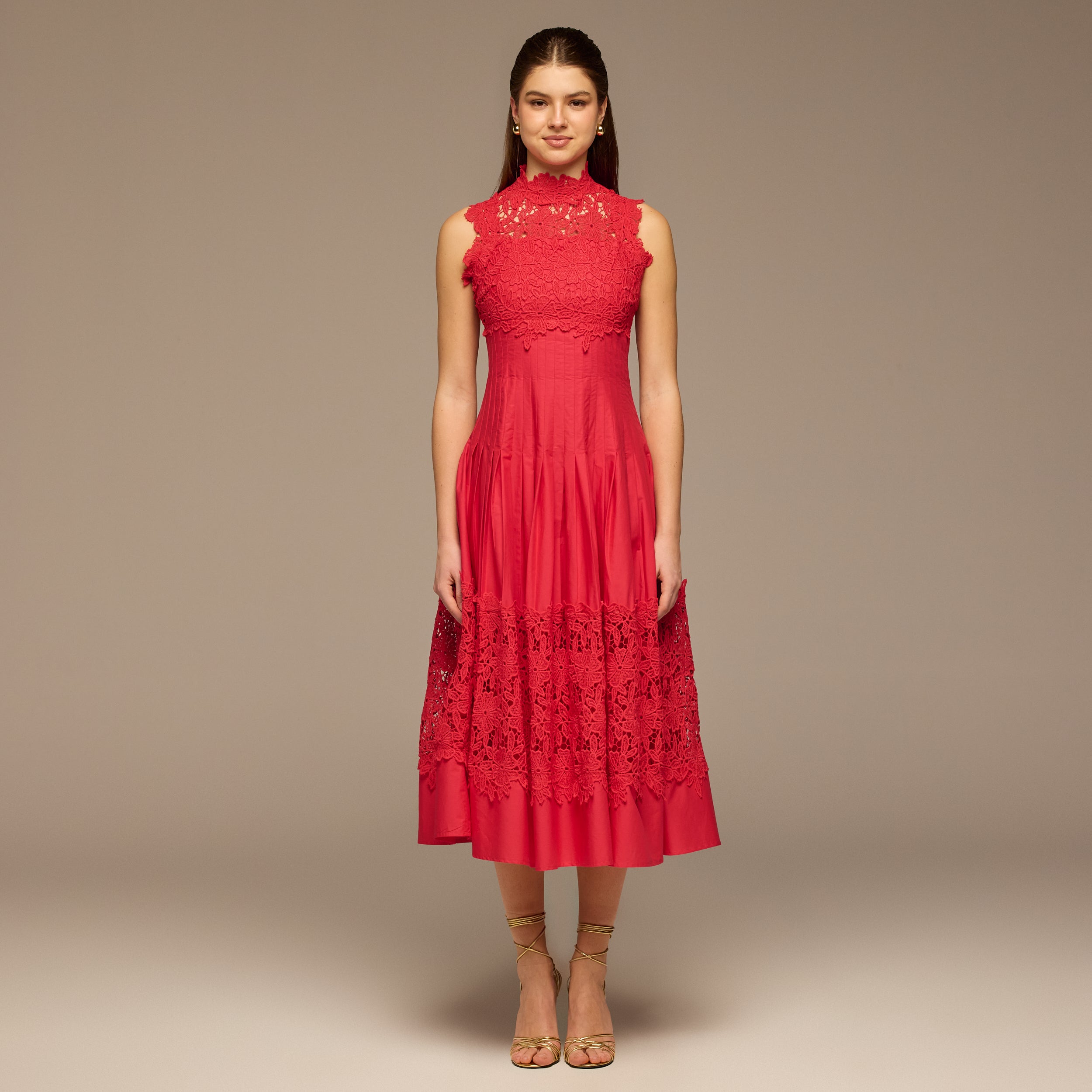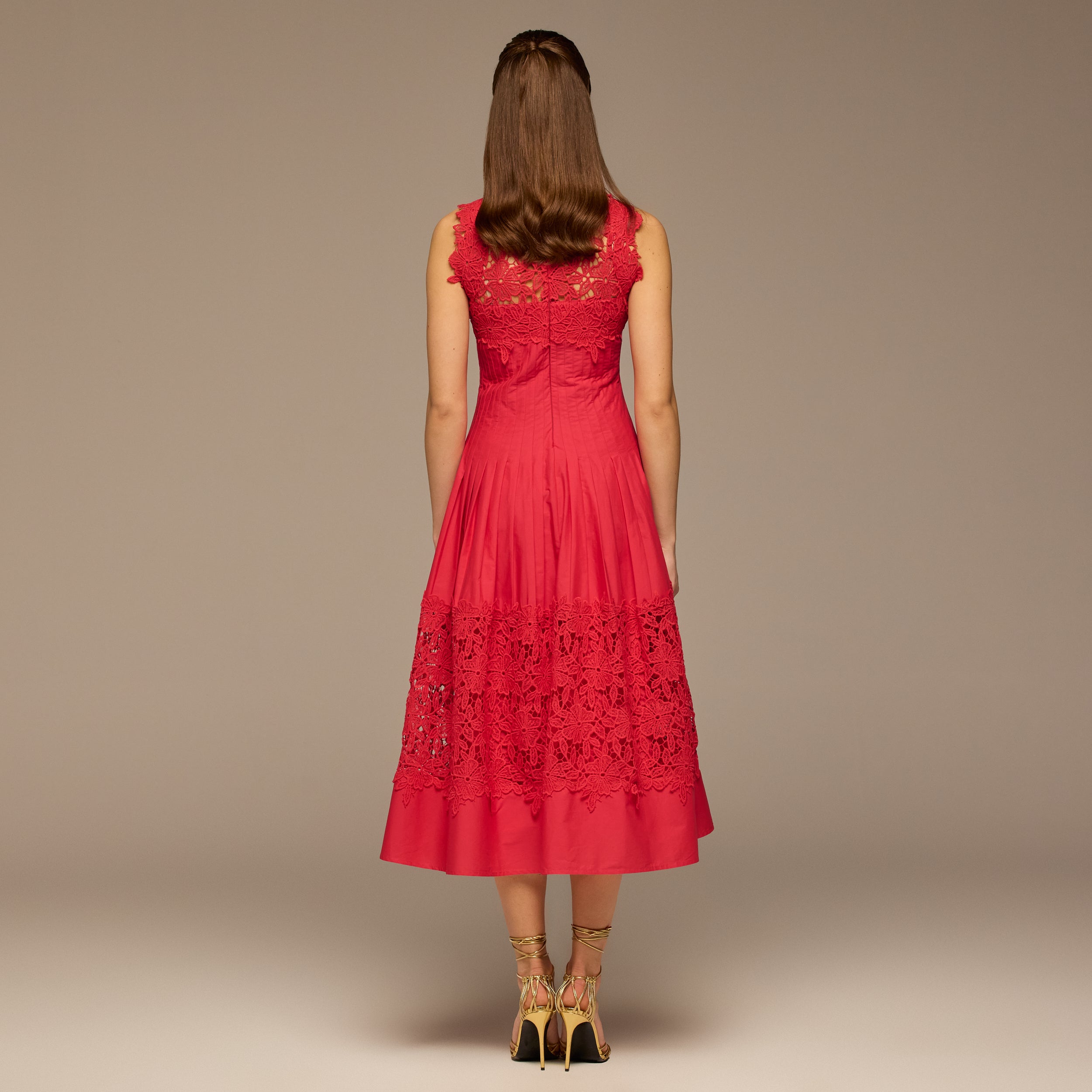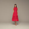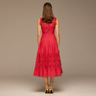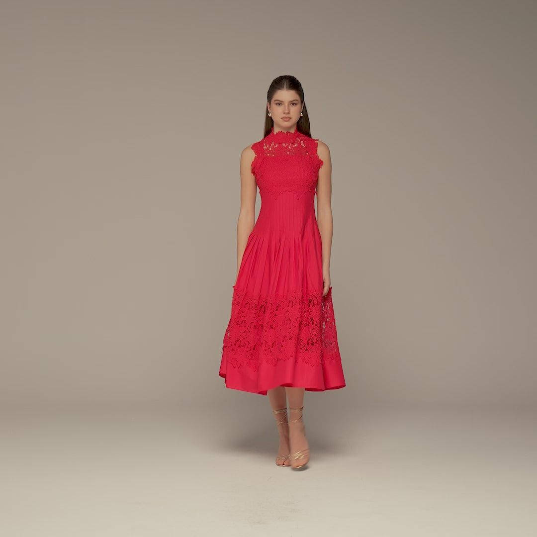 Red Lace-Paneled Cotton Midi Dress