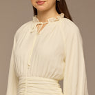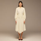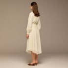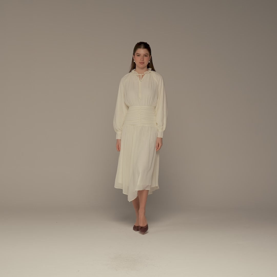 This chiffon long-sleeve dress is designed for ease and grace, with a softly gathered waist that defines the shape without feeling tight. The lightweight chiffon flows gently with movement, making it comfortable for long hours while still looking refined. Ideal for daytime events, Ramadan gatherings, or elegant evenings where you want coverage without heaviness.