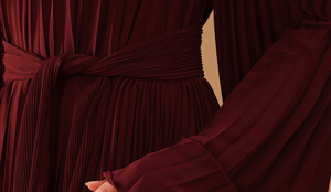 Burgundy All Pleats Long Sleeve Chiffon Dress
