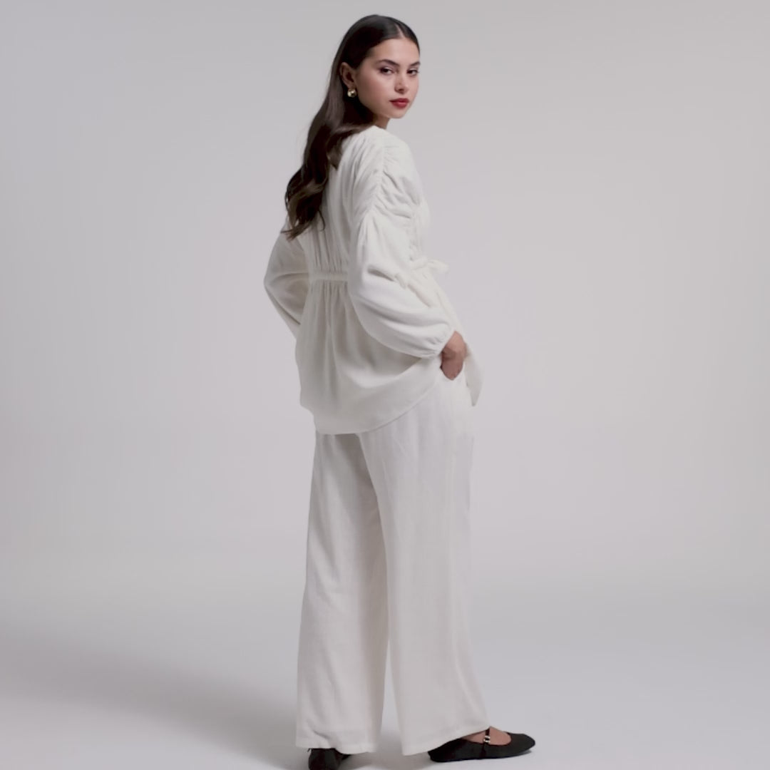 This Gathered Long Sleeve Blouse is a stylish addition to any wardrobe. With its gathered design, this blouse offers a flattering and feminine silhouette. Made from high-quality materials, it is both comfortable and durable. Perfect for both casual and formal occasions, this blouse is a versatile and timeless piece.