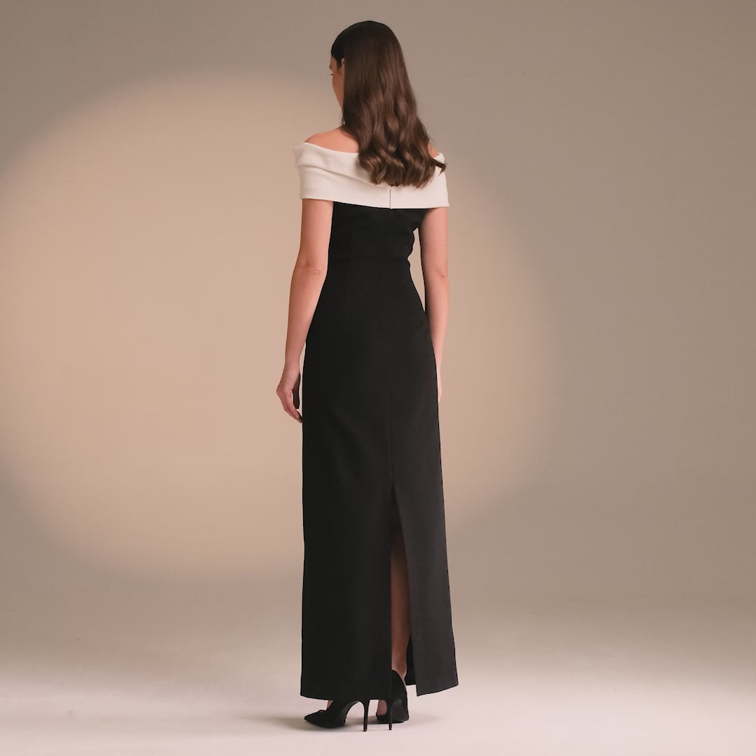 Indulge in luxury and sophistication with our Off-shoulder Crepe Maxi Dress. Perfect for Eid or summer occasions, this dress is designed to showcase your elegant shoulders and flatter your figure with its flowing crepe fabric. Make a statement and turn heads with this exclusive and timeless piece.
