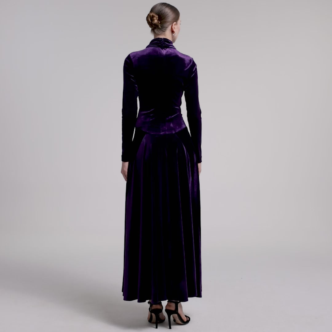 Purple Velvet Mock Neck Maxi Dress