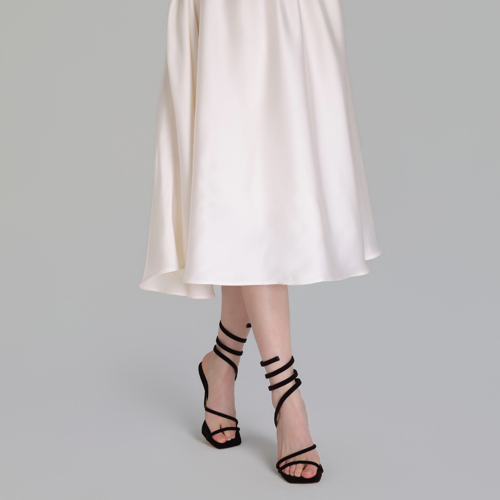 Crafted from plush velvet, these spiral-strap high heel sandals bring a striking twist to evening style. The wrap-around design embraces the ankle gracefully, while the soft velvet finish adds depth and texture. Designed to stand out, they’re perfect for nights when you want your look to make an impression.