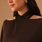 Brown Off-Shoulder Neck Strap Kaftan with Inner Belt
