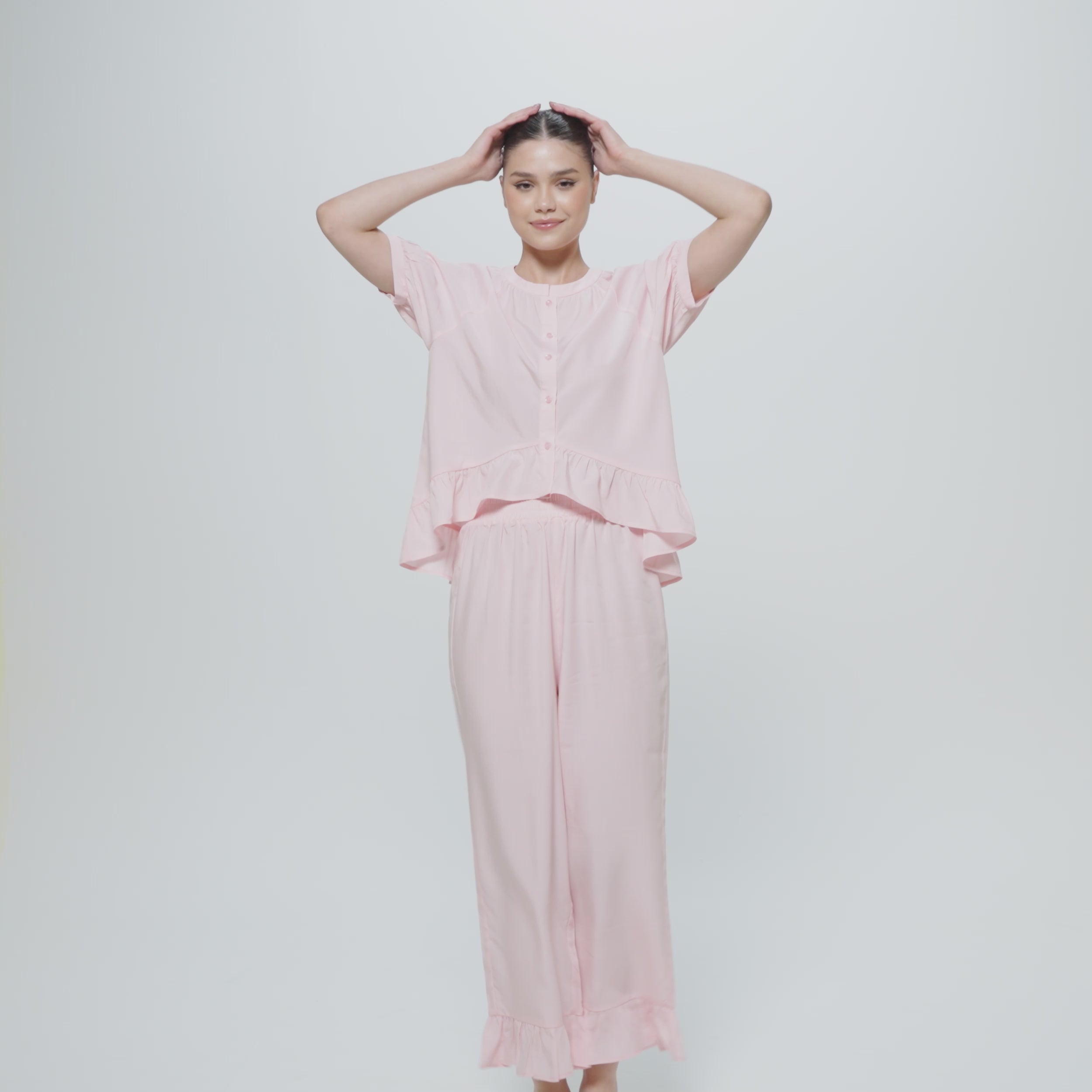 The Tencel Plaid Elastic Waist Pants are made for slow days and light movement. Featuring a gentle plaid pattern and adjustable drawstring waist, these pants combine comfort with playful detail, finished with a subtle ruffle hem for a soft, feminine touch.