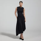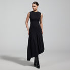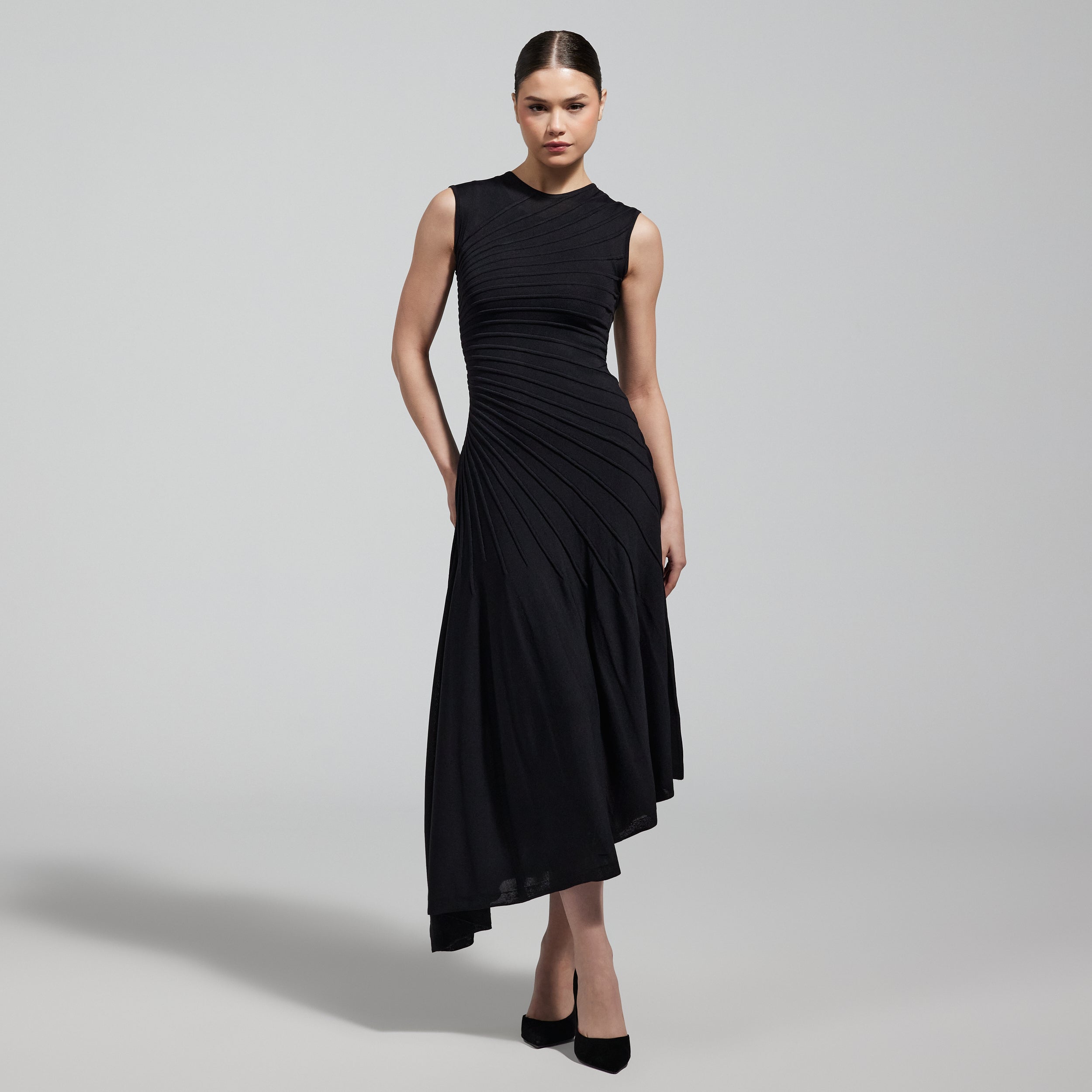 This asymmetric knit midi dress is designed with a sculpted texture that subtly enhances the figure. The diagonal knit pattern adds movement and structure, creating a flattering shape that feels easy and relaxed. With its soft stretch fabric and asymmetric hem, it’s a modern piece that works effortlessly for both daytime and evening occasions.