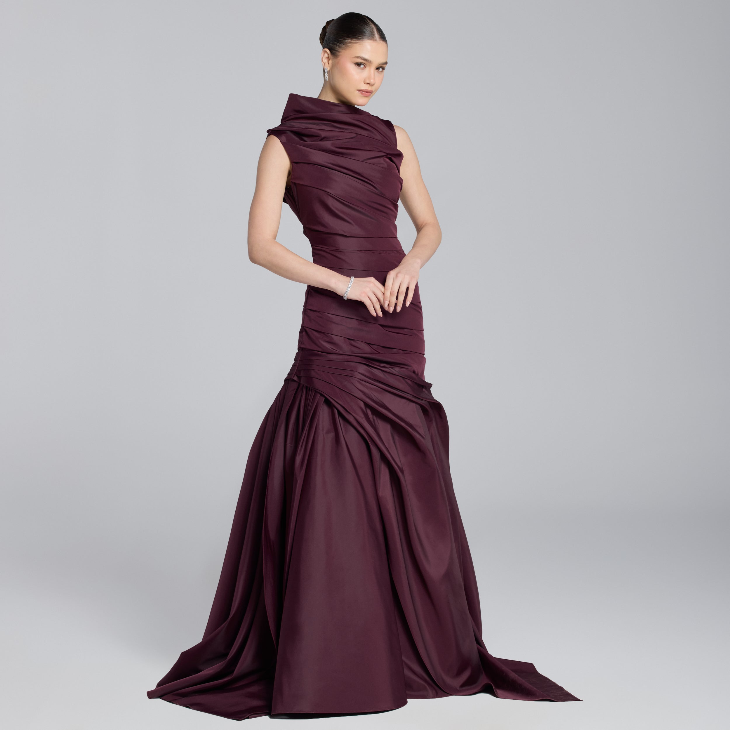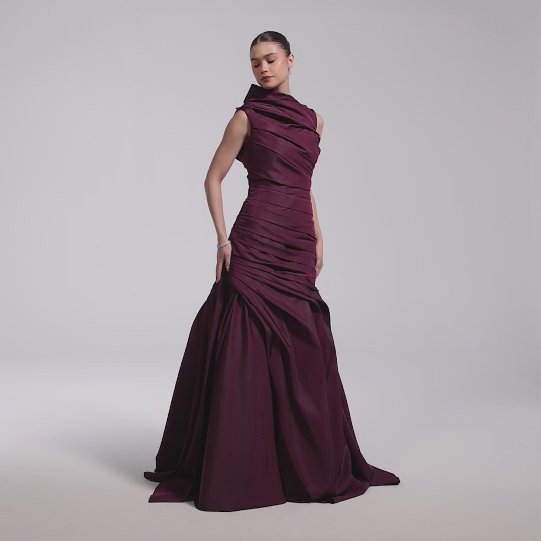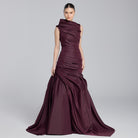 Burgundy Draped Taffeta Fishtail Gown