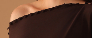 Brown Off Shoulder Long Sleeve Crepe Kaftan